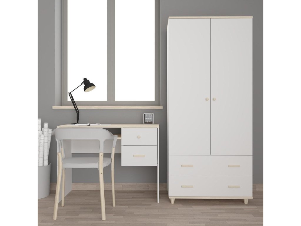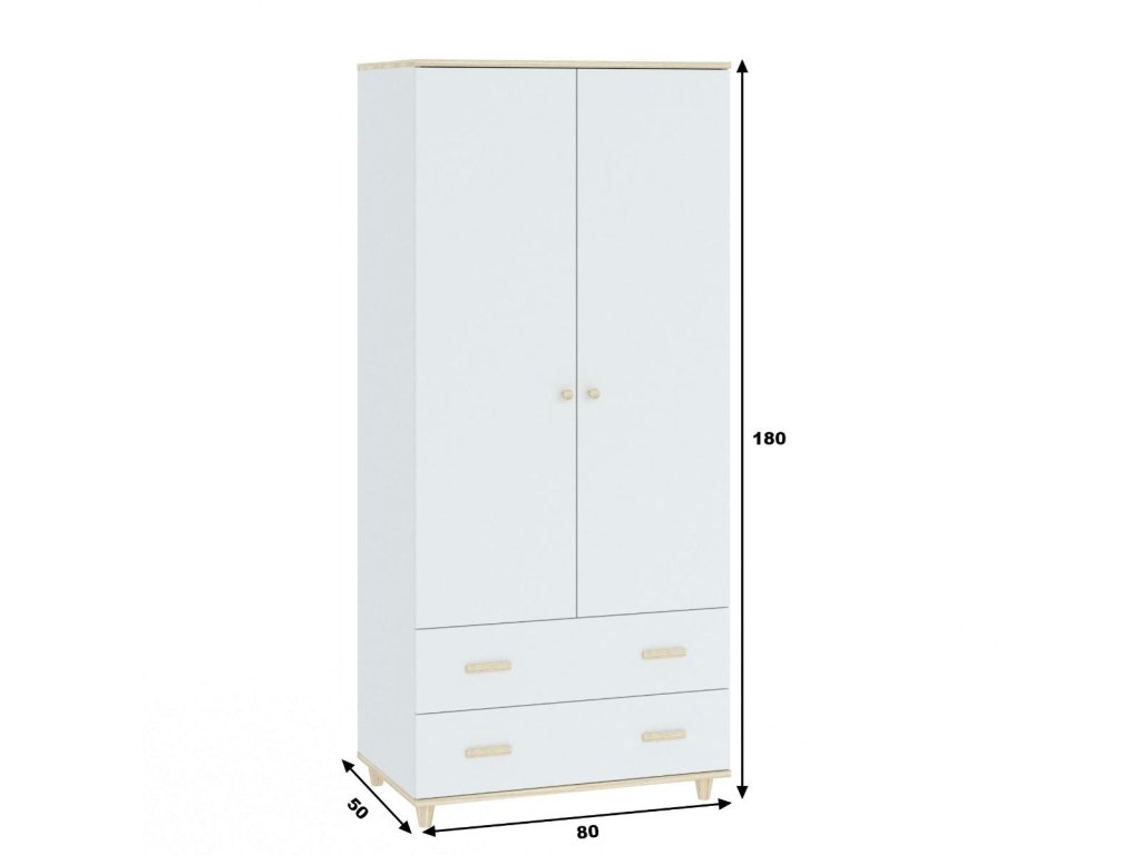 Dvoudveřová šatní skříň se dvěma zásuvkami v moderním stylu, je vyrobena z kvalitní LTD desky v barevném provedení bílá/akácie. Uvnitř skříně je šatní tyč. V naší nabídce naleznete více variant nábytku této řady. Dodáváme v demontovaném stavu.Doplňkové parametry