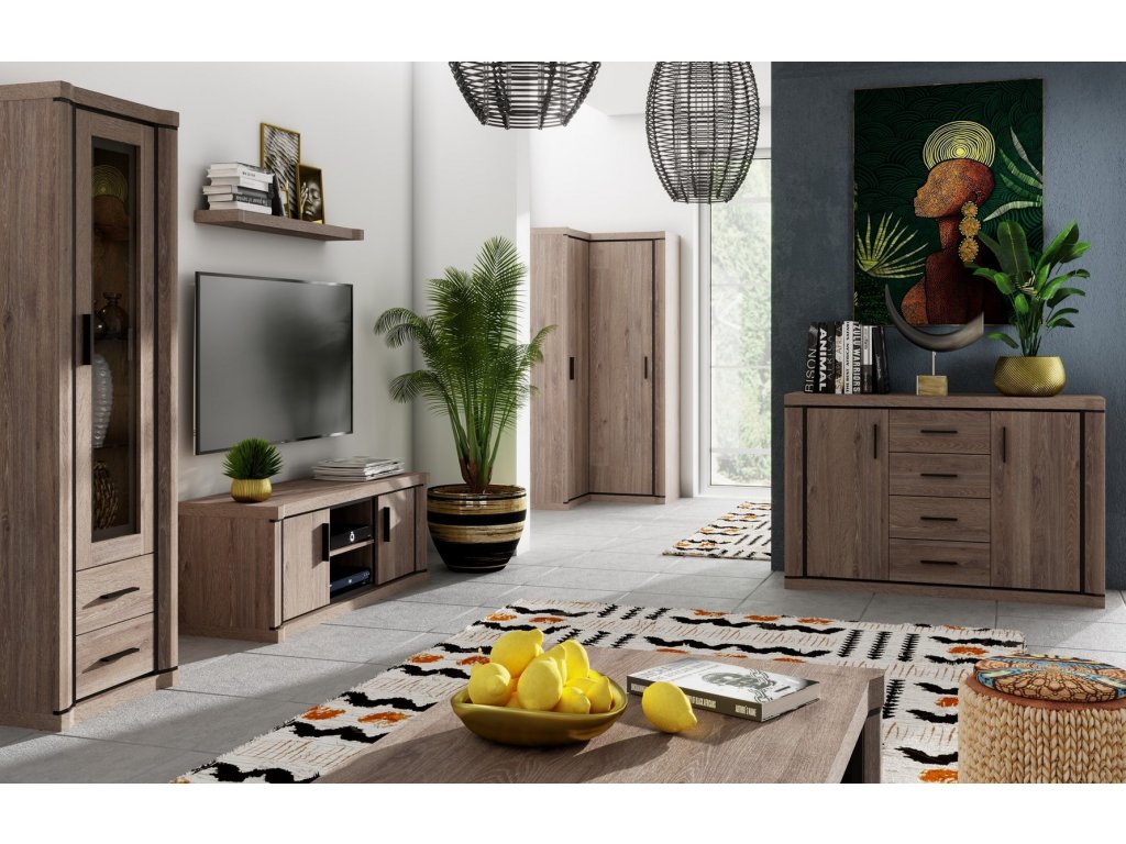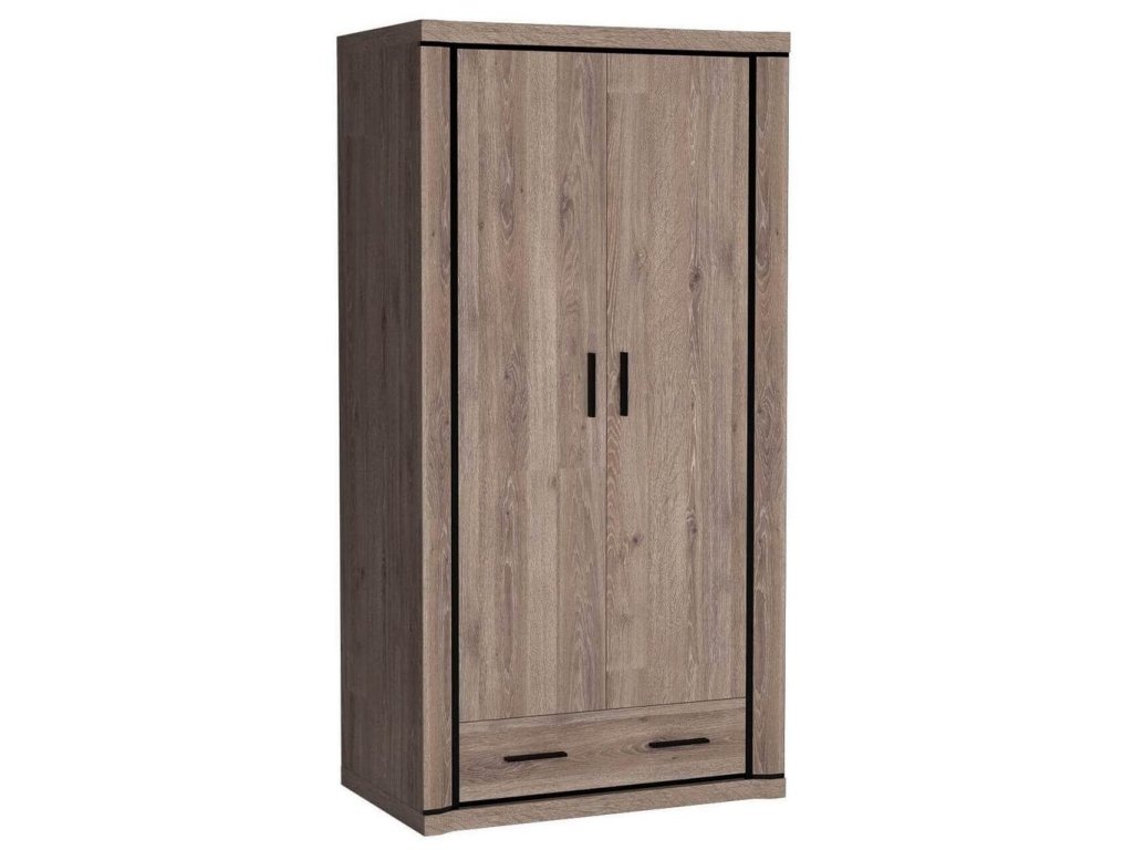 Šatní skříň 2-dveřová ze sektorové řady má šatní tyč, dole je jedna zásuvka. Má zajímavé provedení v podobě netradičně vyřezávaných vrchních a spodních desek. Systém je exkluzivní kolekce navržena v moderním duchu. Celá řada se vyznačuje masivním vzhledem a jednoduchými tvary. Nábytek je vyroben z kvalitního LTD s lištami z MDF, součástí nábytku jsou desky 48 mm, vše opatřeno ABS páskou. Barevné provedení - dub lanýž. Má široký výběr komponentů, díky kterým lze vybavit nejen obývací pokoj, ale i ložnici nebo kancelář. Dodáváme v demontovaném stavu.Doplňkové parametry