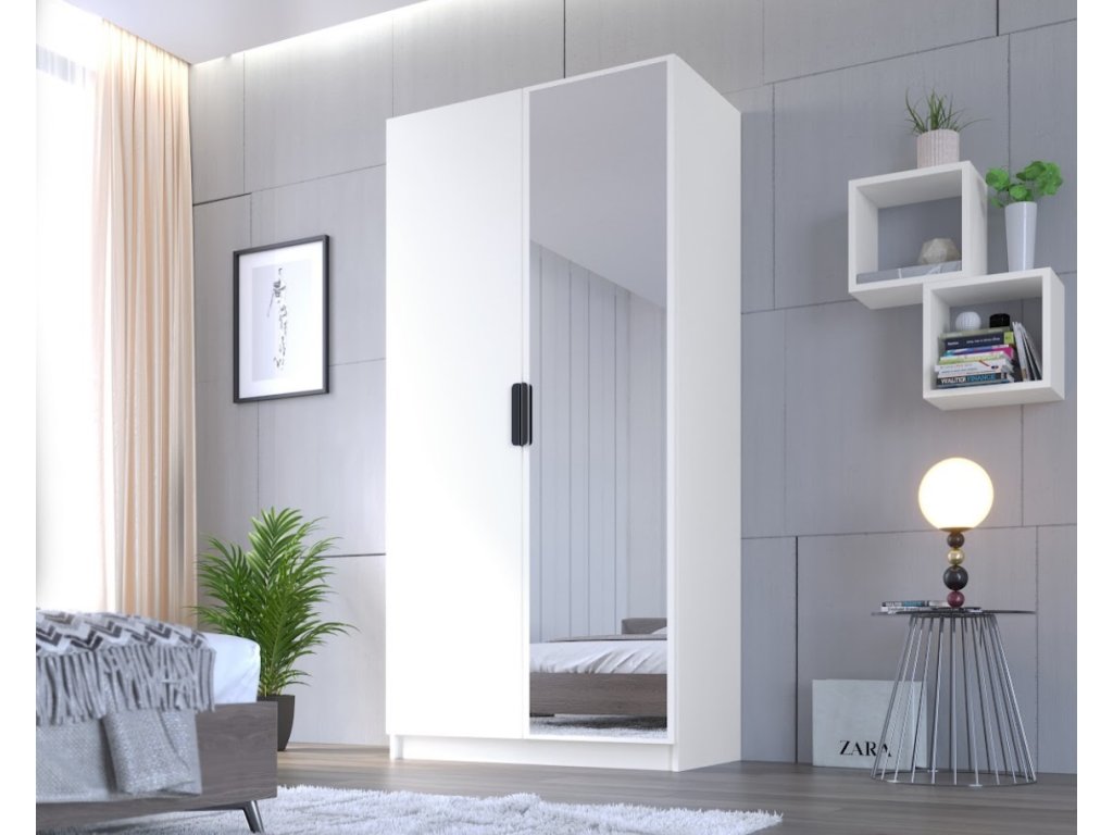 Šatní skříň Cynta bílá se zrcadlem