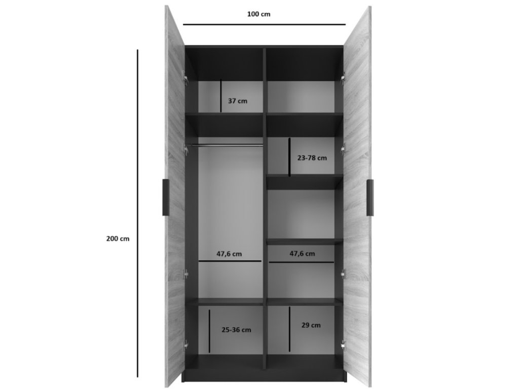 Skříň nabízí dostatek úložného prostoru – praktické police i šatní tyč zajistí přehledné uložení oblečení, doplňků i dalších věcí. Díky kombinovanému provedení získáte funkční řešení pro uspořádání šatníku.
