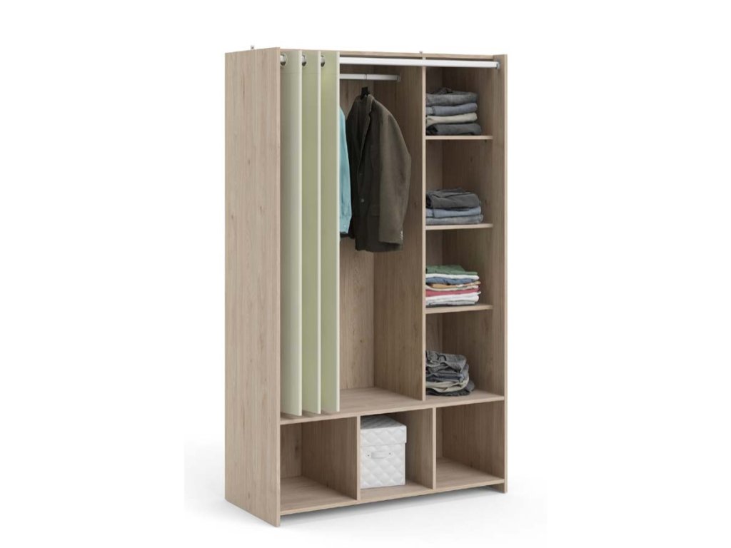 Série šatních skříní Harmony přináší praktické a originální řešení úložného prostoru. Dveře skříně jsou nahrazeny textilním závěsem. Skříň je vyrobená z kvalitního a snadno udržovatelného lamina. Skvěle se hodí do dětského nebo studentského pokoje, předsíně, kanceláře i domácí pracovny.