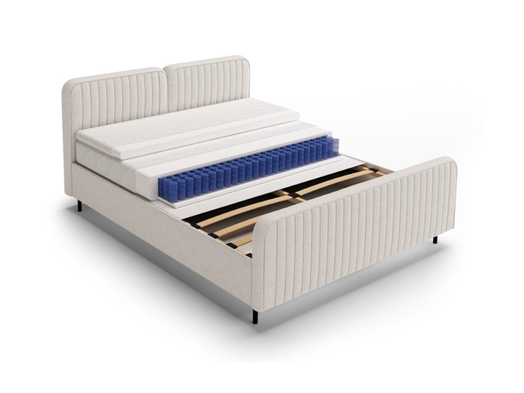 Proměňte svou ložnici v oázu pohodlí s naší luxusní postelí, která v sobě spojuje kvalitní materiály, sofistikovaný design a praktické využití. Dřevěný rám zajišťuje pevnost a dlouhou životnost, zatímco POCKET matrace o výšce 17 cm dokonale kopíruje tvar vašeho těla pro nerušený spánek. Pro ještě větší pohodlí je součástí také 4cm TOPPER s výplní z T25 PU pěny, který nabízí extra vrstvu měkkosti a prodyšnosti.