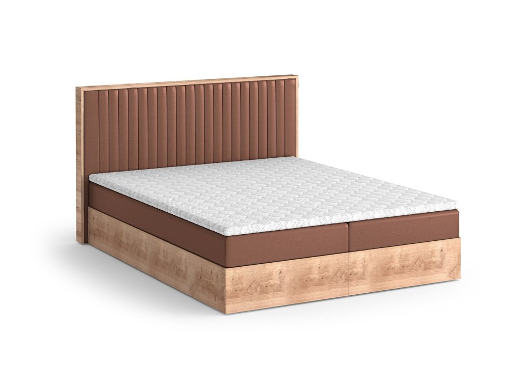 Postel Peru v moderním stylu se ozdobným prošíváním a imitací dřeva v barvě dub Artrisan. Postel má vestavěnou bonelovou matraci -pružná pěna T25 a také úložný prostor. Postel je dostupná v rozměrech 140,160,180 cm (dekorativní prvky nejsou zahrnuty v ceně produkt ). K posteli topper ZDARMA.