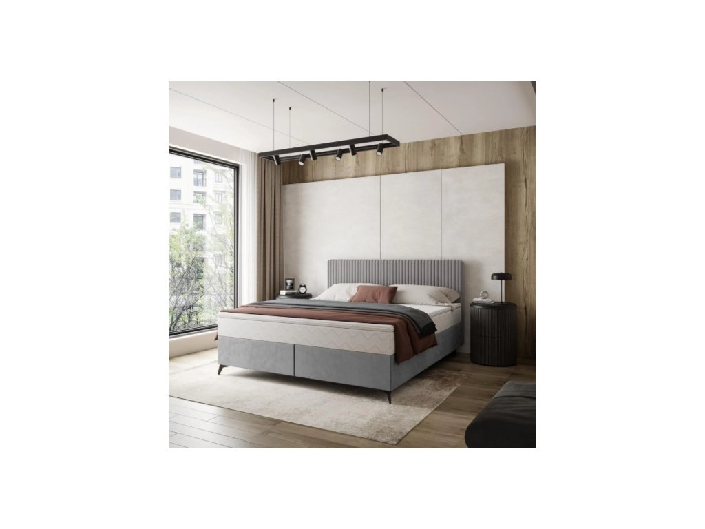 Dokonalá kombinace pohodlí, funkčnosti a stylu to je postel Wave s taštičkovou matrací a topperem. Tato kombinace poskytuje vynikající oporu vašemu tělu a přizpůsobuje se vašemu individuálnímu tvaru a pohybům během spánku. Do úložného prostoru je snadný přístup s pomocí plynových zvedáků. Předností postele je prošívané čelo a černé kovové nohy. Postel je čalouněná v látce Manila 01+Tilia 03.