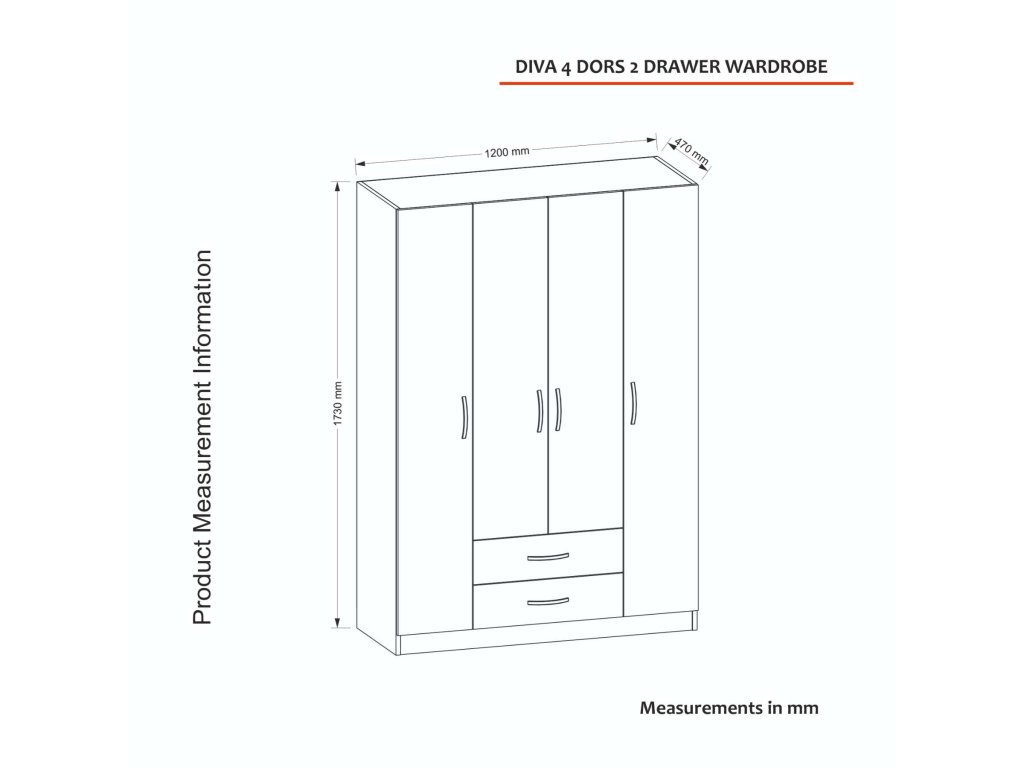 - Vybavení: 2 šatní tyče, 2 zásuvky a 3 police