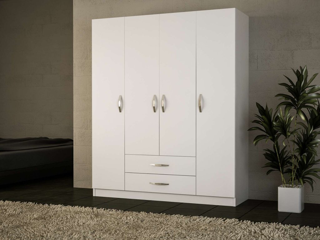 Šatní skříň vyniká svým skandinávským designem v bílé barvě, který dodá vaší ložnici svěží a moderní vzhled. Praktické vnitřní uspořádání se dvěma šatními tyčemi, dvěma zásuvkami a třemi policemi nabízí dostatek úložného prostoru pro vaše oblečení a další předměty.