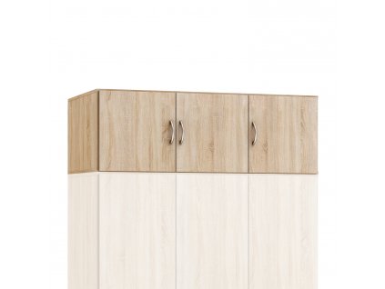 Šatní skříň třídveřová je vyrobena z kvalitní LTD v barevném provedení dub sonoma. Ke skříni je možné dokoupit komodu, na kterou pak skříň umístíte. Dodáváme v demontovaném stavu.Doplňkové parametry