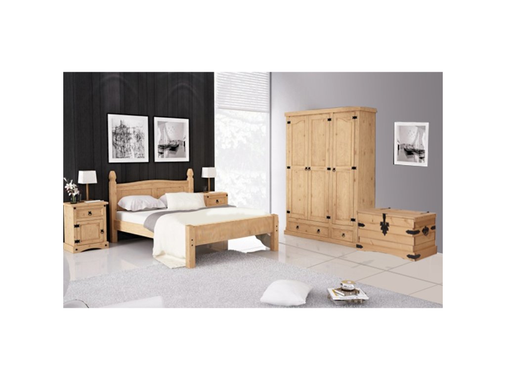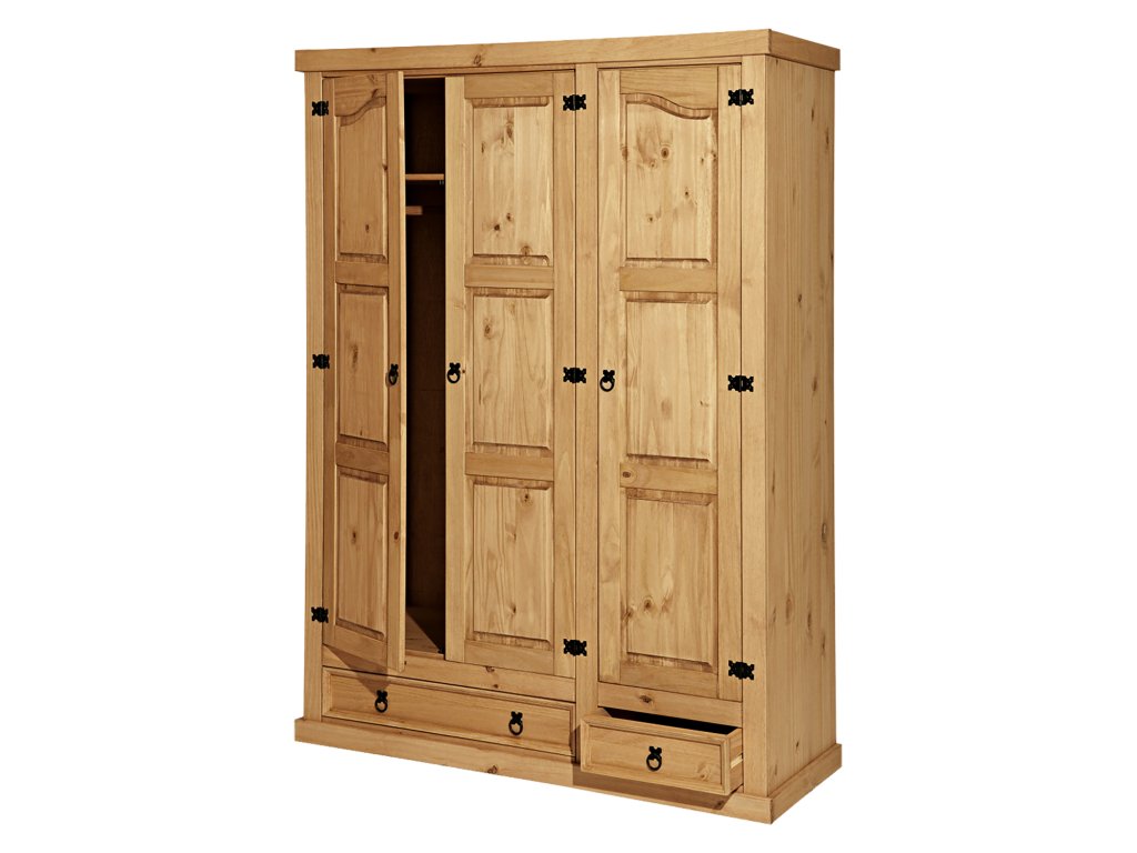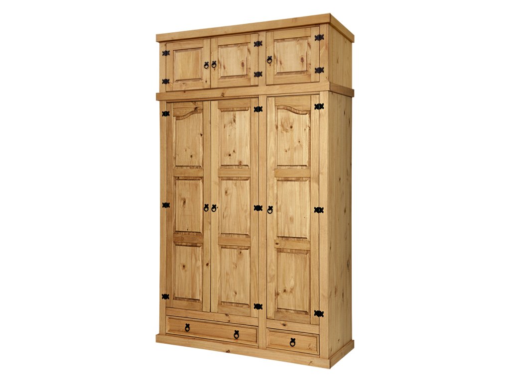 materiál masiv borovice voskovaná v medovém odstínu prostor dělený v poměru 2:1 širší část šatní tyč a police, užší část 3 police ve spodní části 1 velká a 1 malá zásuvka, kovové ozdobné úchytky doporučený nástavec CORONA 16952 součást sestavy CoronaDoplňkové parametry