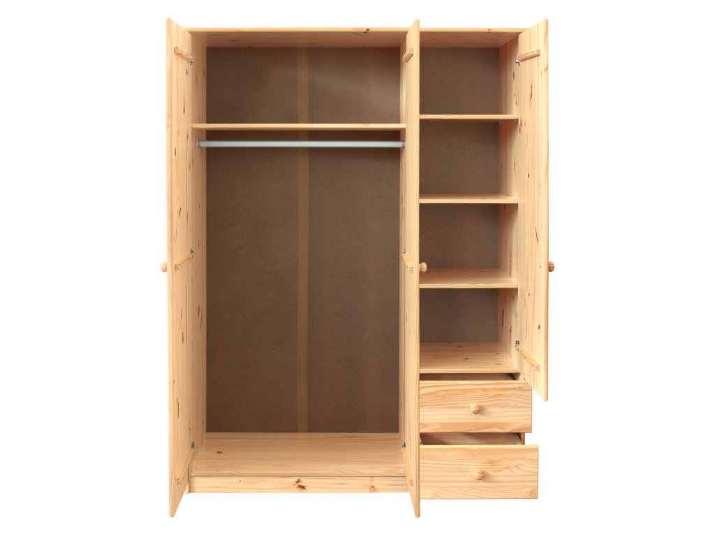 materiál masiv borovice, lakované provedení prostor dělený v poměru 2:1 širší část šatní tyč a police, užší část 3 variabilní police, 2 zásuvky doporučený nástavec 899Doplňkové parametry