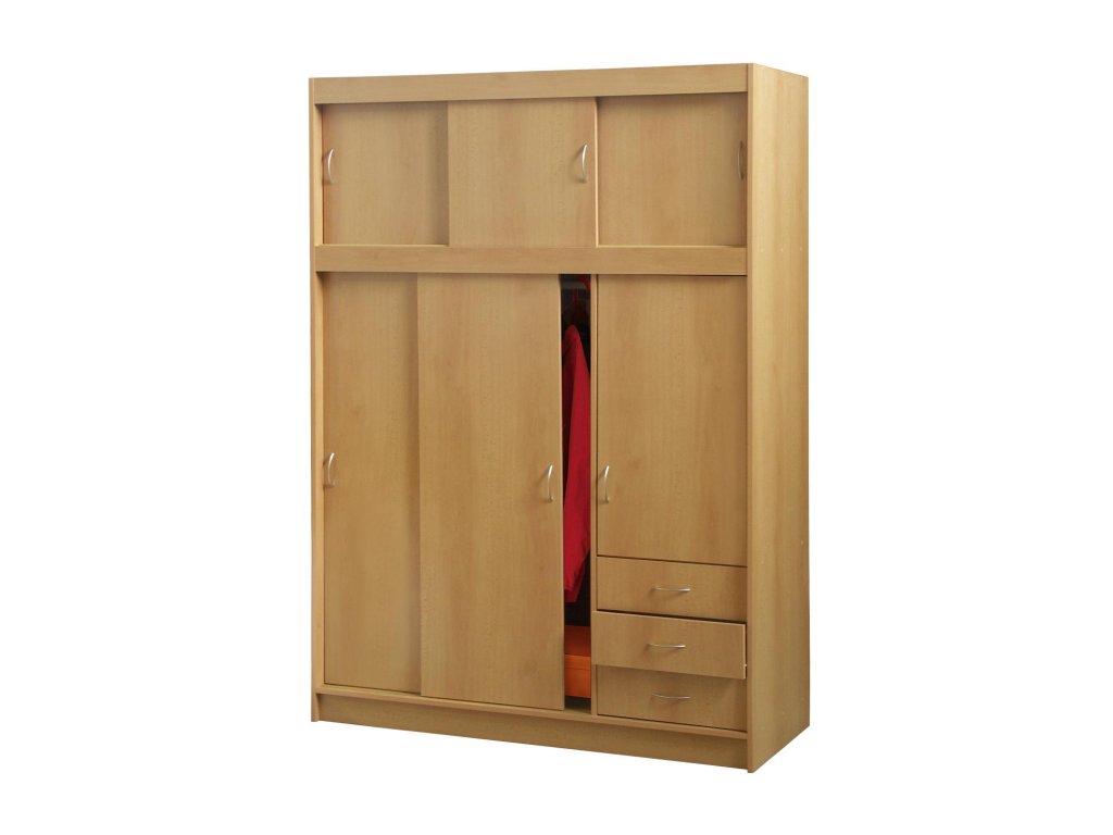 barevné provedení buk posuvné dveře, cena včetně nástavce, prostor dělený v poměru 2:1 širší část šatní tyč, užší část 2 variabilní police, 3 zásuvky s kovovými pojezdyDoplňkové parametry