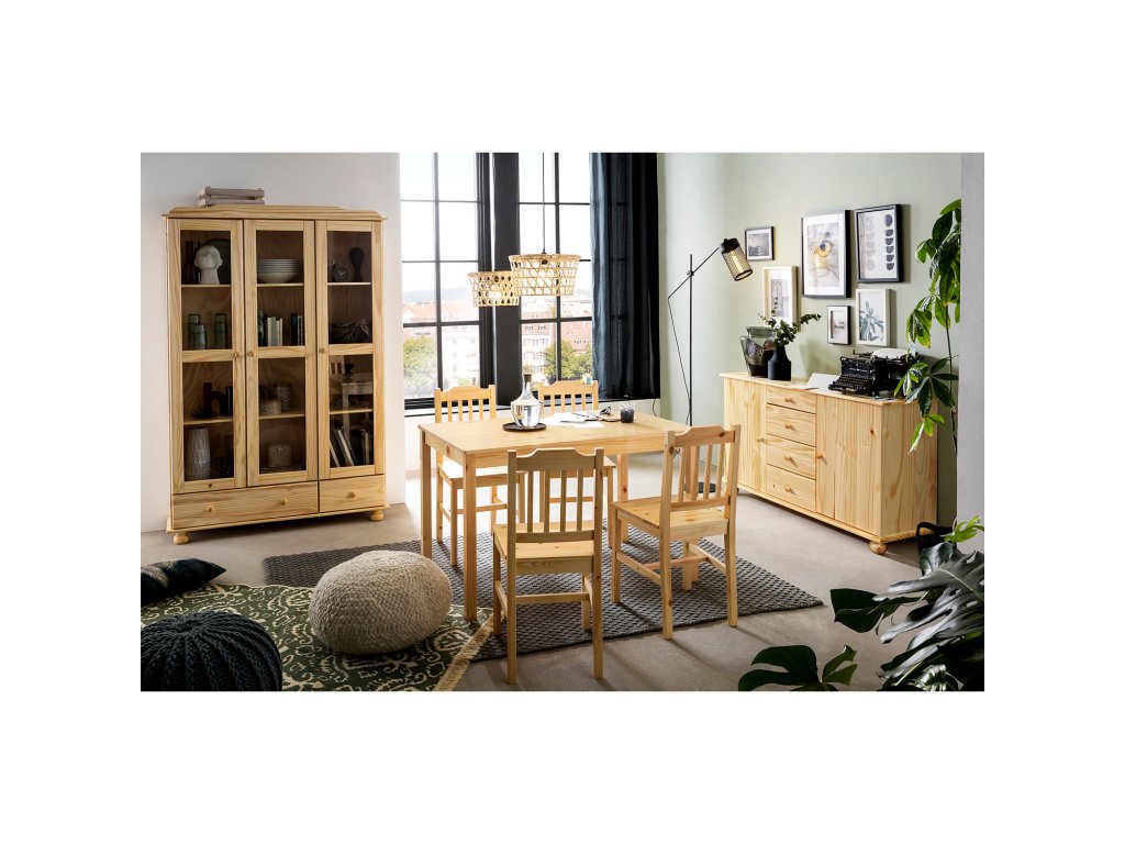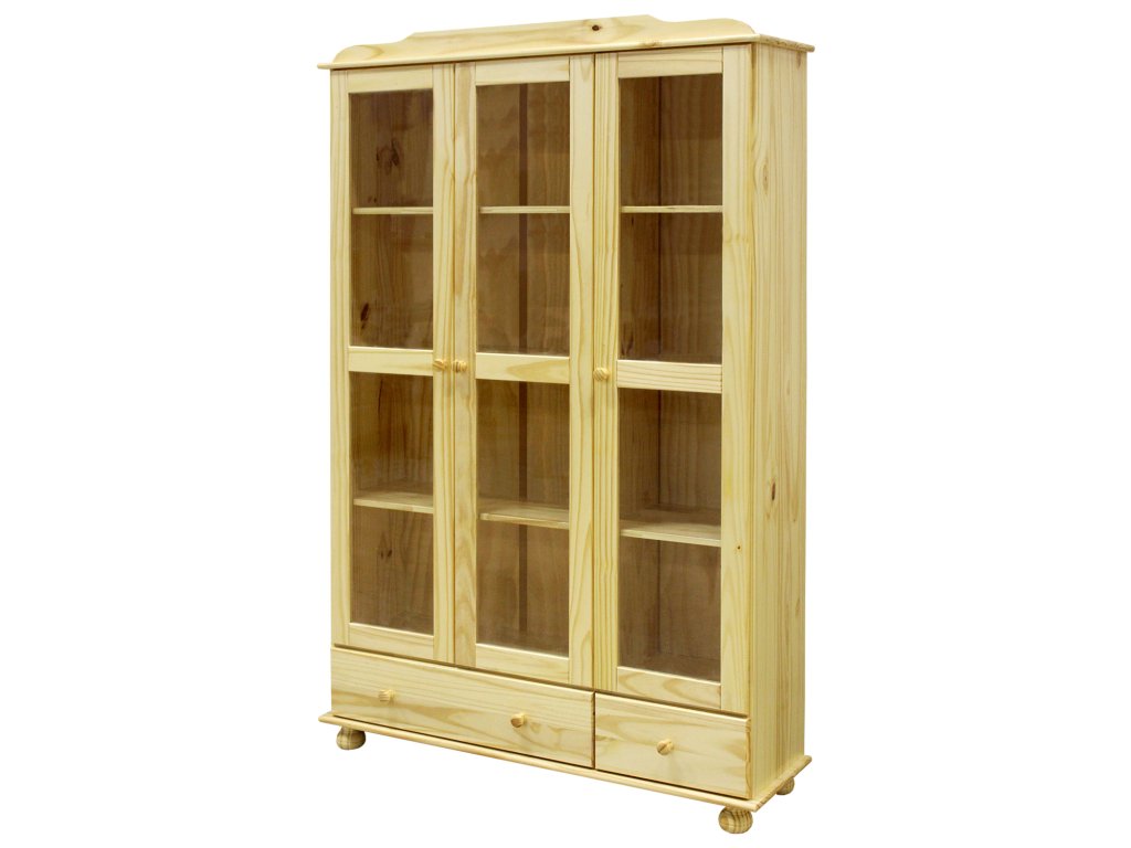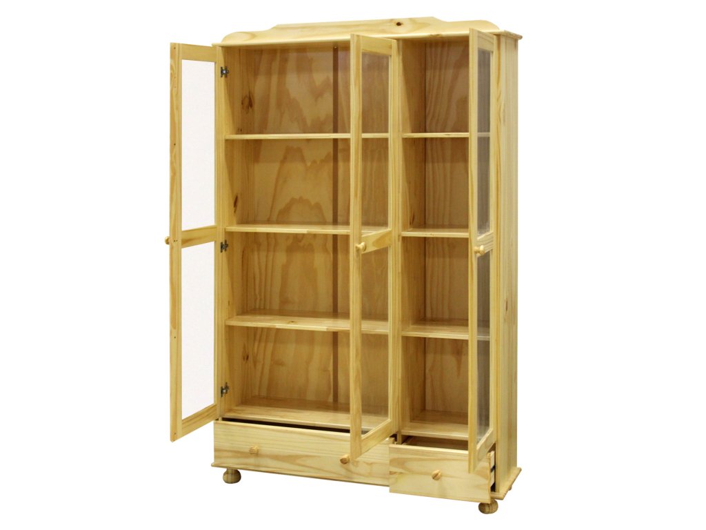 materiál masiv borovice, lakované provedení prostor dělený v poměru 2:1 v každé části 3 police, prosklená dvířka v spodní části velká a malá zásuvka s kovovými pojezdy rozměr větší zásuvky (š/h/v) 75,5 × 29,5 × 13 cm rozměr menší zásuvky (š/h/v) 34,5 × 29,5 × 13 cmDoplňkové parametry