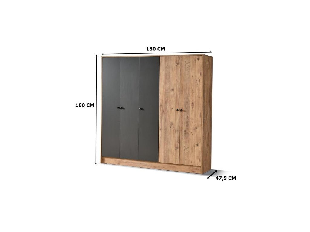 Stylová kombinace antracitu a borovice Výška: 180 cm Šířka: 180 cm Hloubka: 47,5 cm Vyrobena z kvalitní dřevotřísky. Dodáváme v demontovaném stavu.Doplňkové parametry