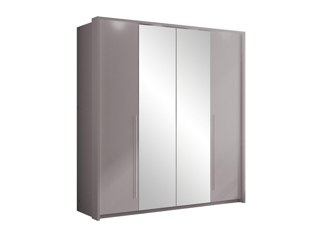 Šatní skříň s křídlovými shrnovacími dveřmi v moderním provedení. Výhodou tohoto systému dveří je volný přístup do celé skříně. Korpus je z kvalitní LTD desky v barvě láva. Dveře jsou v barvě láva doplněné zrcadlem. Skříň obsahuje praktické LED osvětlení v ceně. Uspořádání polic viz. obrázek. Dodáváme v demontovaném stavu.Doplňkové parametry