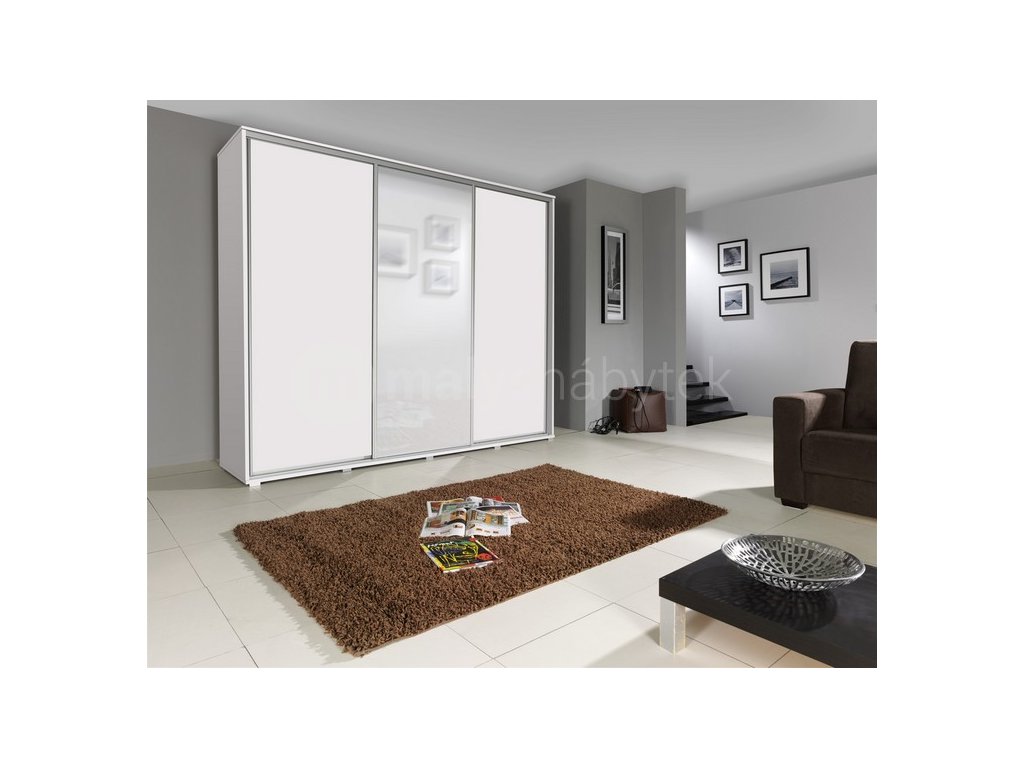 Velká šatní skříň SILVER 255 s posuvnými dveřmi a zrcadlem nabízí díky své velikosti více úložného prostoru než běžné šatní skříně. Vyrábí se z praktického silného lamina, jež je jednak odolné proti vlhkosti i chemikáliím a jednak umožňuje značnou úsporu finanční, oproti klasickému masivu. Skříně mají navíc i praktické ABS hrany, u kterých nehrozí uštípnutí ani jiné mechanické poškození. Díky své velké váze je tato šatní skříň velice stabilní. Šatní skříň se dodává v demontu.