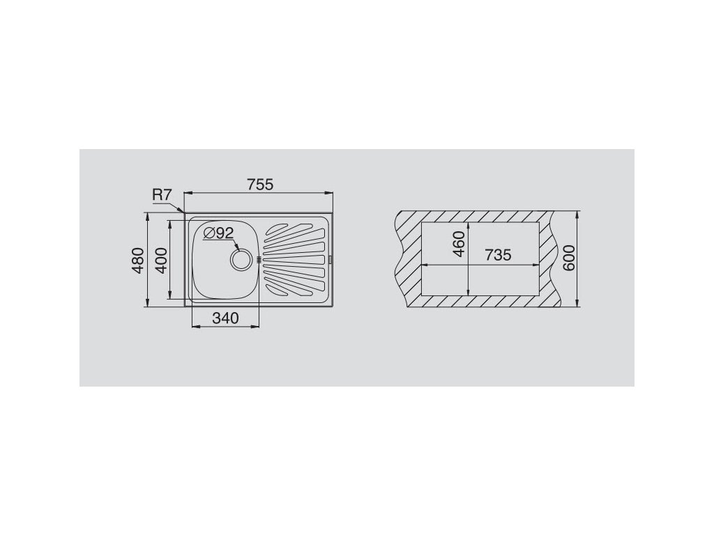 Nerezový dřez vyrobený nejmodernější technologií z materiálu Cr Ni 18/10 (DIN 1.4301) největší jakosti. Tato potravinářská ocel s vysokým obsahem chrómu a niklu je nejvhodnější pro výrobu nerezových dřezů, mezi největší přednosti patří odolnost proti korozi i při narušeném povrchu, odolnost proti vysokým teplotám, vysoká životnost a hygiena. Dřez se neloupe, nemůže prasnout a rozbít se. Je recyklovatelný v hutnické výrobě, tím je šetrný k životnímu prostředí. Povrch dřezu je hladký, rozměry dřezu - 75,5 x 48 cm, rozměr dřezové nádoby 34 x 40 x 15 cm. Dřezováí plocha obsahuje odtok napojený na sifon, který je součástí balení. Součástí sifonu je i přípojka na myčku s kompletním montážním příslušenstvím. Dřez je vestavný do pracovní desky, která se pokládá na kuchyňskou skříňku pod dřez, která má šířku min. 45 cm. Dřez je reversibilní (dá se uložit z obou stran). V naší nabídce nabízíme vhodné vodovodní baterie.Doplňkové parametry