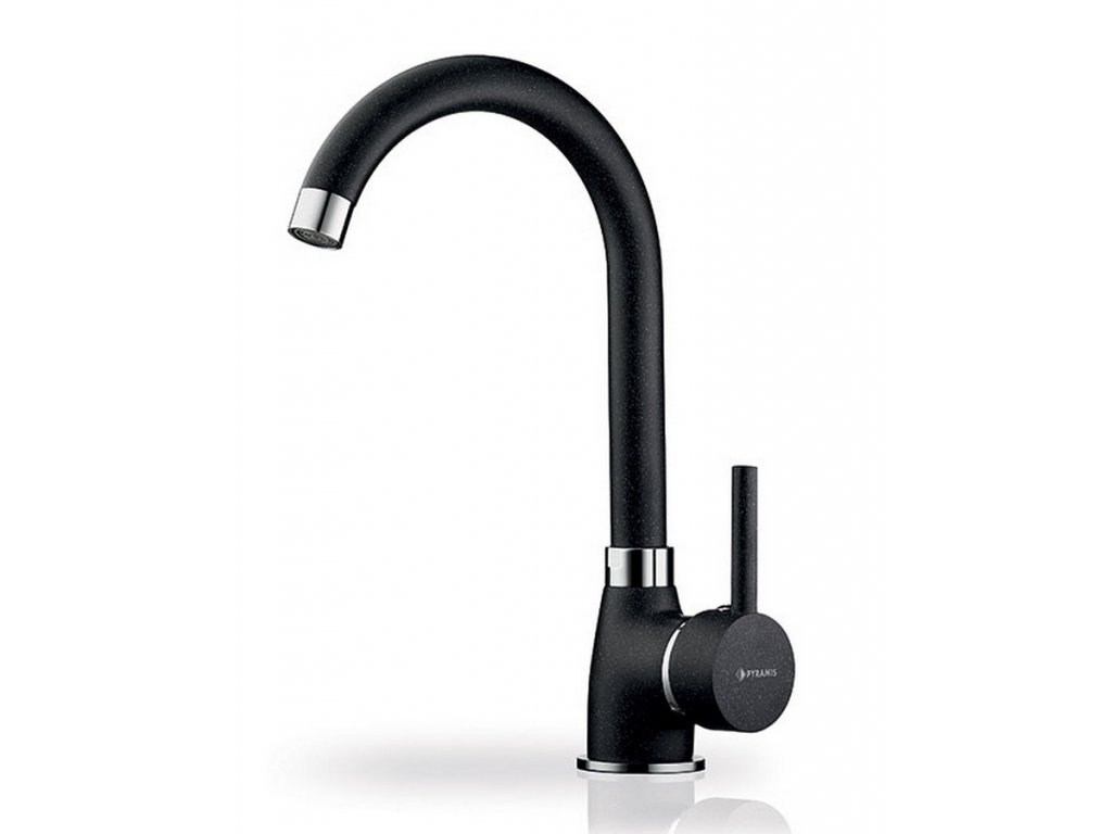 Otočná stojánková jednopáková vodovodní baterie ke dřezům výrobce Pyramis. Barevné provedení - black (černá). Výška baterie - 280 mm. Vodovodní baterie Pyramis jsou vyráběny nejmodernější technologií. Baterie jsou osazeny vnitřními náboji ( kartušemi ) s keramickými disky, jejichž překrýváním je regulováno průtokové množství vody a jejich teplota. Baterie Pyramis mají akreditaci UKAS.Doplňkové parametry