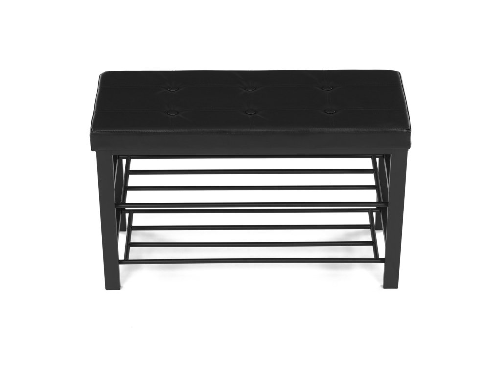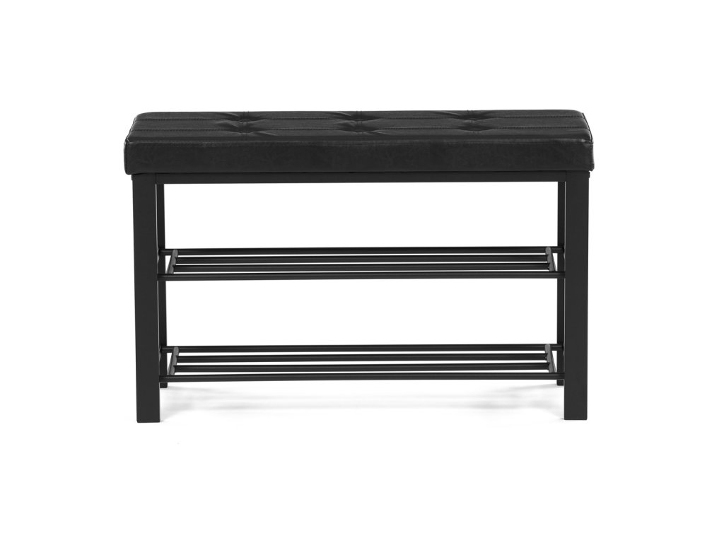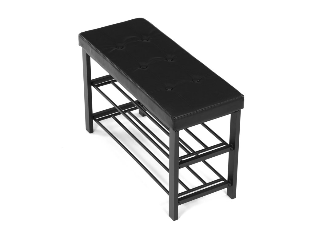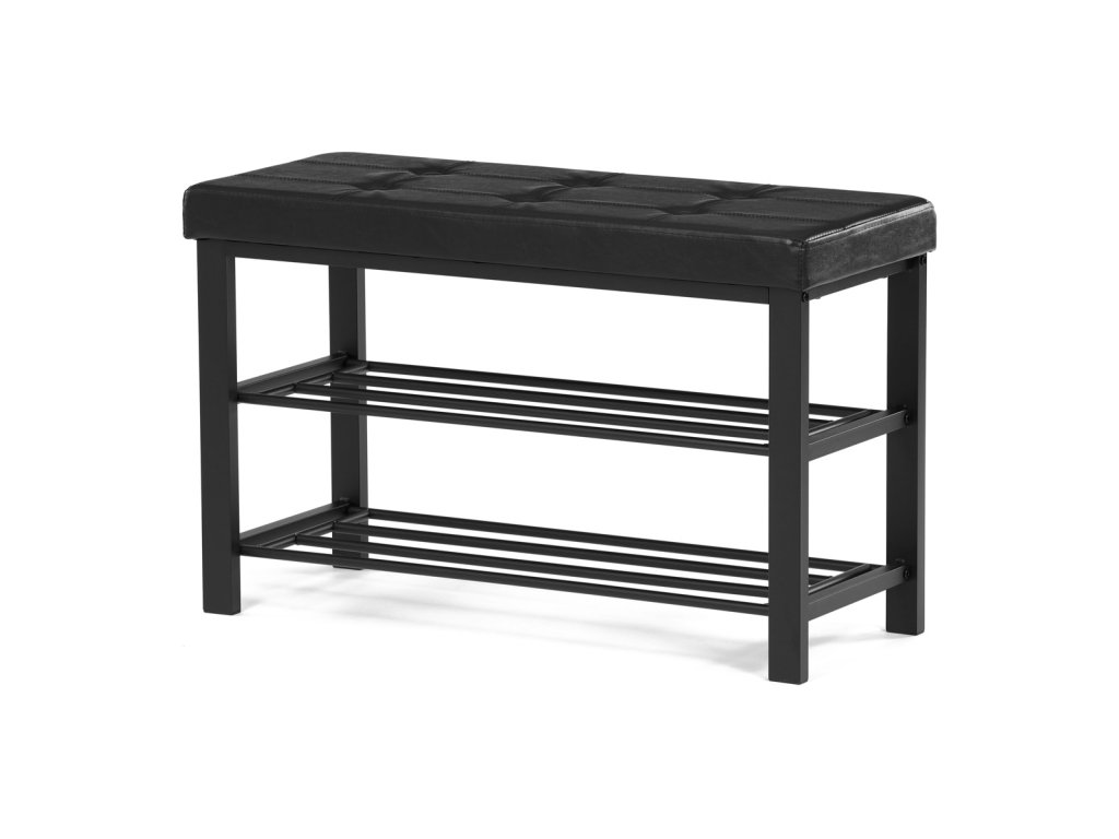 Botník 2 police, potah černá ekokůže, kov - černý matný lak