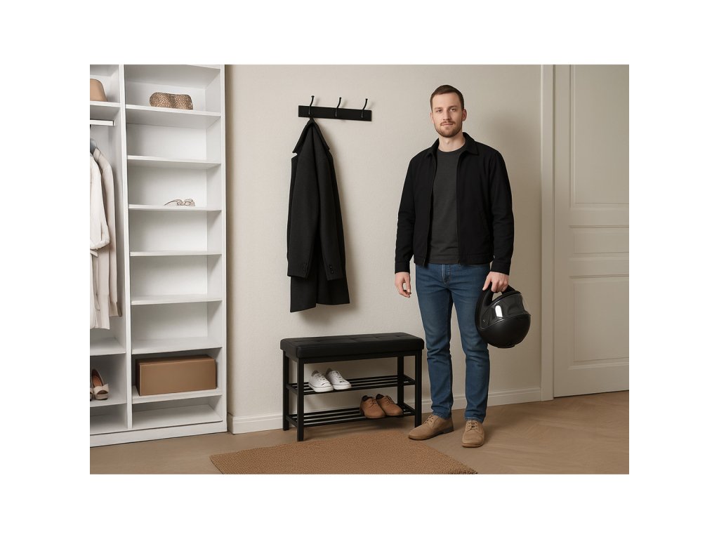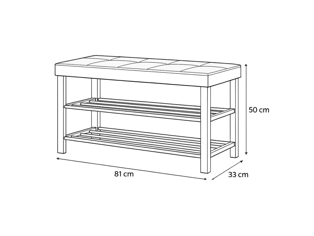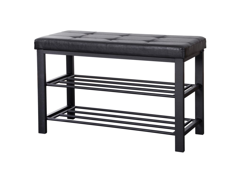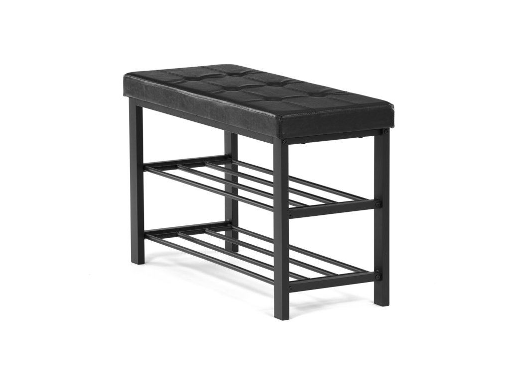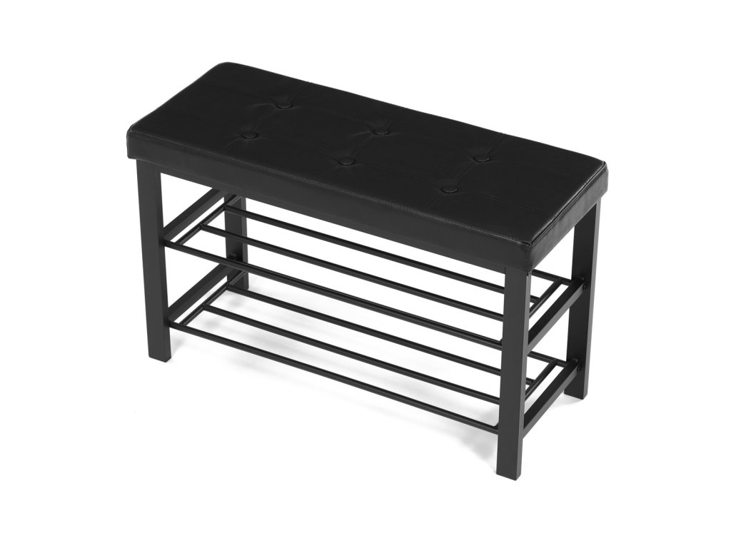 Botník 2 police, potah černá ekokůže, kov - černý matný lak