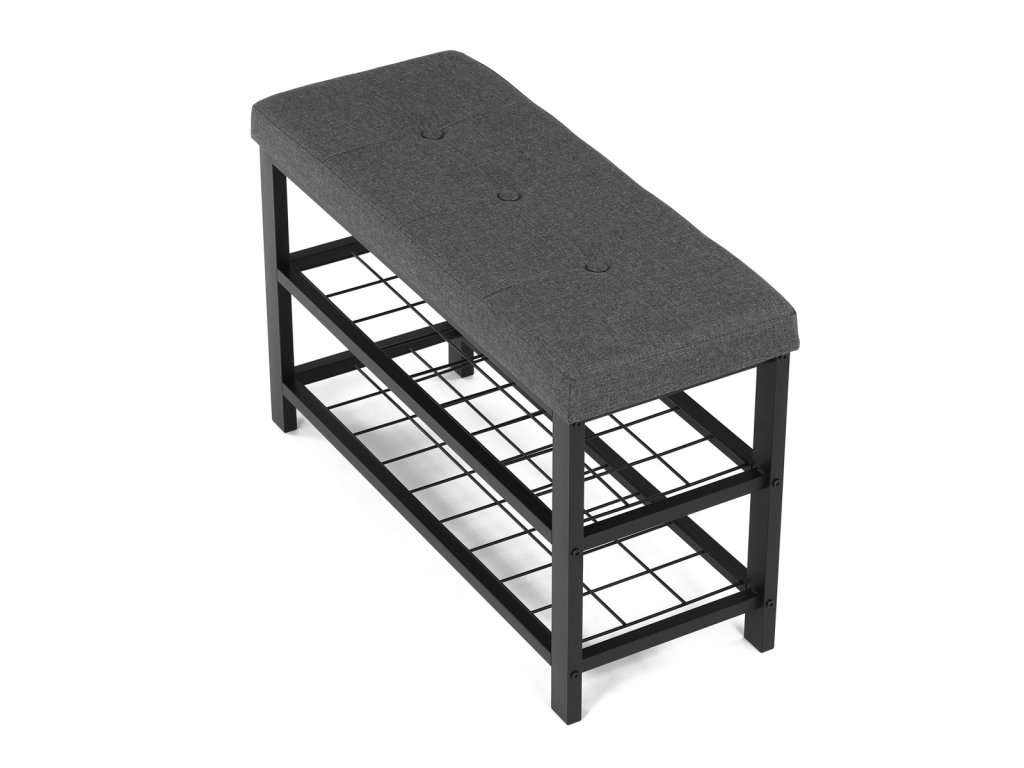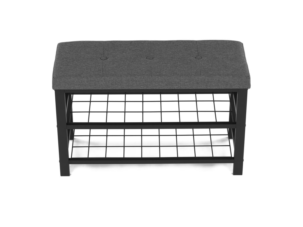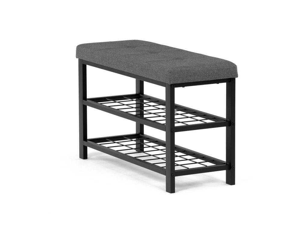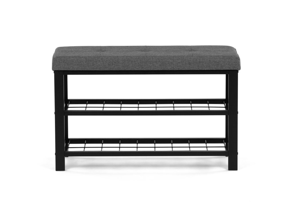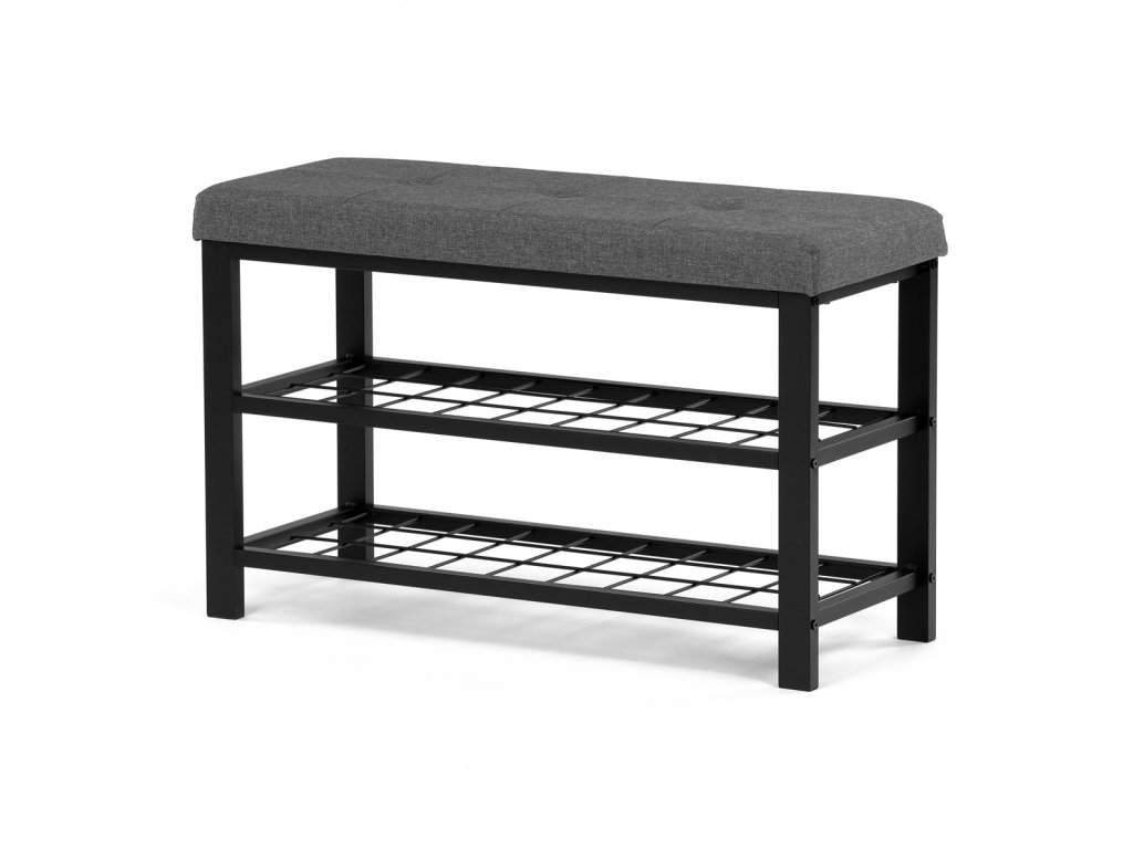 Botník 2 police, potah šedá látka, kov - černý matný lak