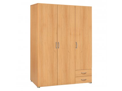 Šatní skříň třídveřová ze sektorové řady DESJO. Skříň nabízí 2 možnosti namontování postranních polic a šatní tyče - viz perokresba. Tento moderní nábytek je součástí sestavy určené do jídelny nebo obývacího pokoje. Celá řada se vyznačuje úspěšnou kombinací současné a moderní přírodní formy. Jednoduchý styl umocňuje senzační bezúchytový systém nábytku. Vyrábí se z vysoce kvalitní dýhované dřevotřískové desky s fólií. Dekor s 3D efektem vizuálně dává dojem hlubokého povrchu. Široký výběr vám zaručí si sestavit nábytek podle svých představ. Barevné provedení je dub sanremo s dekorativním proužkem hnědé barvy. Nábytek se dodává v demontovaném stavu. Výrobce doporučuje vysoký nábytek připevnit ke stěně. Možnost dokoupení vnitřního LED osvětlení.Additional parameters