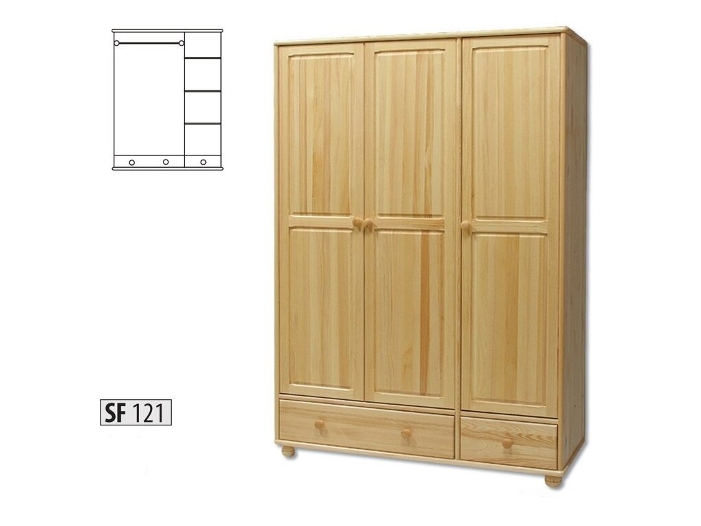 Praktická šatní skříň je vyrobena z kvalitního borovicového dřeva, které přinese do Vaší domácnosti tu správnou přírodní atmosféru a vůni dřeva. Základní borovicové dřevo je bez moření, můžete si však objednat i moření olše, dub, grey nebo ořech za 10% příplatek. Jednotlivé části nábytku tohoto výrobce lze různě kombinovat, čímž docílíte dokonalé harmonie a přitažlivého vzhledu Vašeho domova. Poněvadž má dřevo povrchovou úpravu proti škůdcům a vy budete mít zájem namořit si nábytek sami, napište do poznámek k objednávce - "Bez povrchové úpravy".Additional parameters