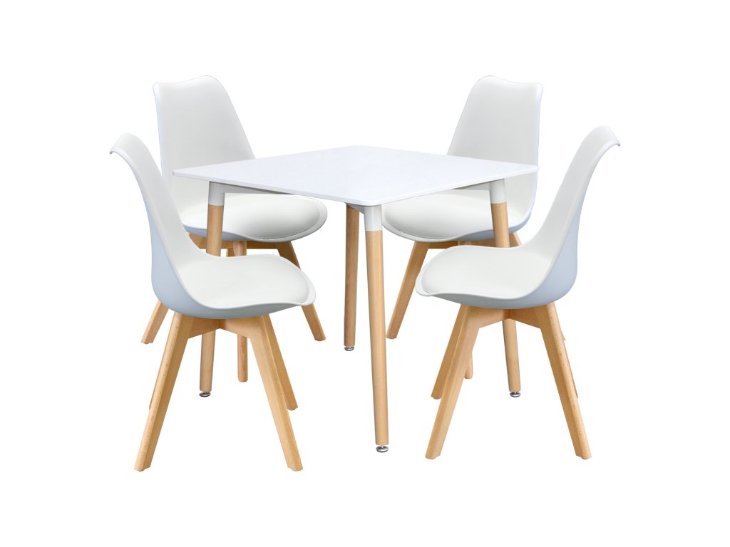 Jídelní stůl 80x80 QUATRO bílý + 4 židle QUATRO bílé