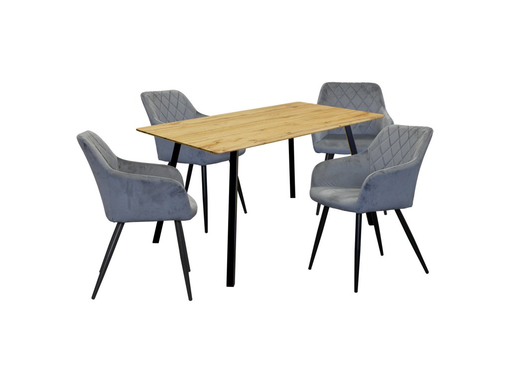Jídelní stůl BERGEN dub + 4 židle DIAMANT šedý samet