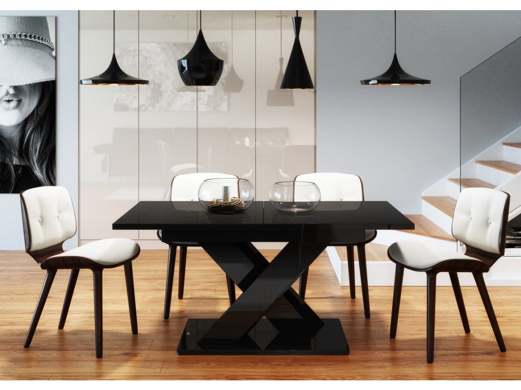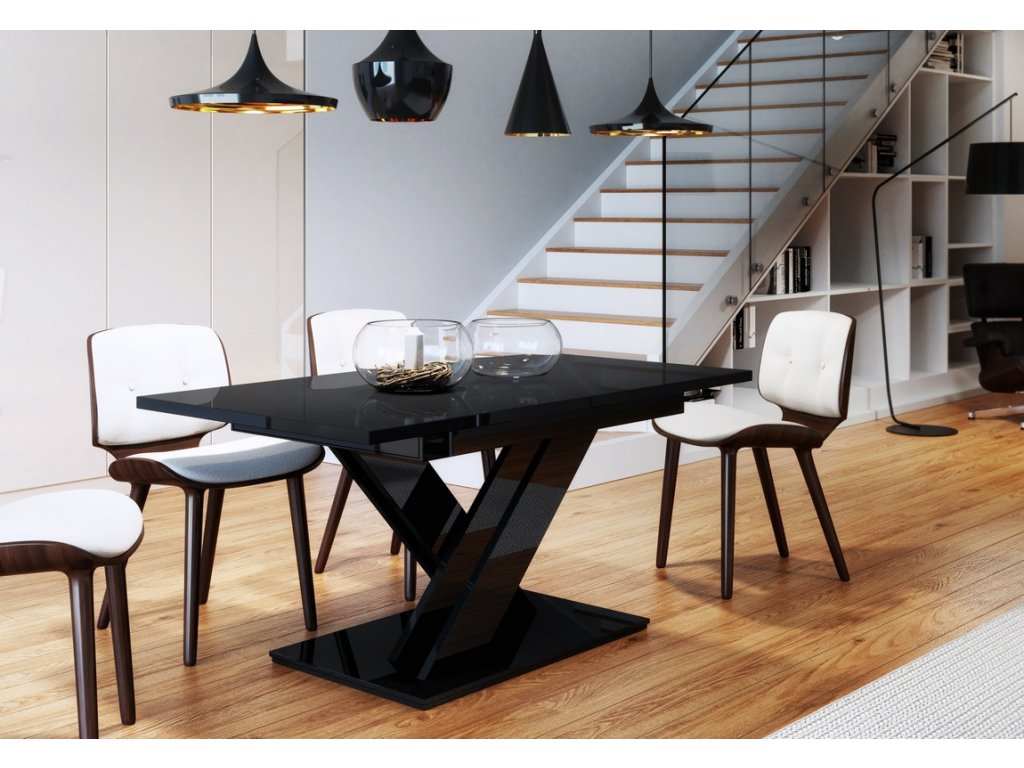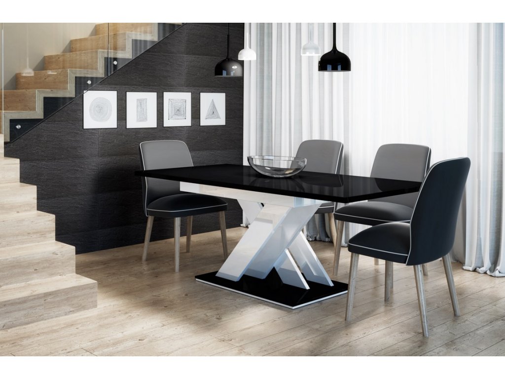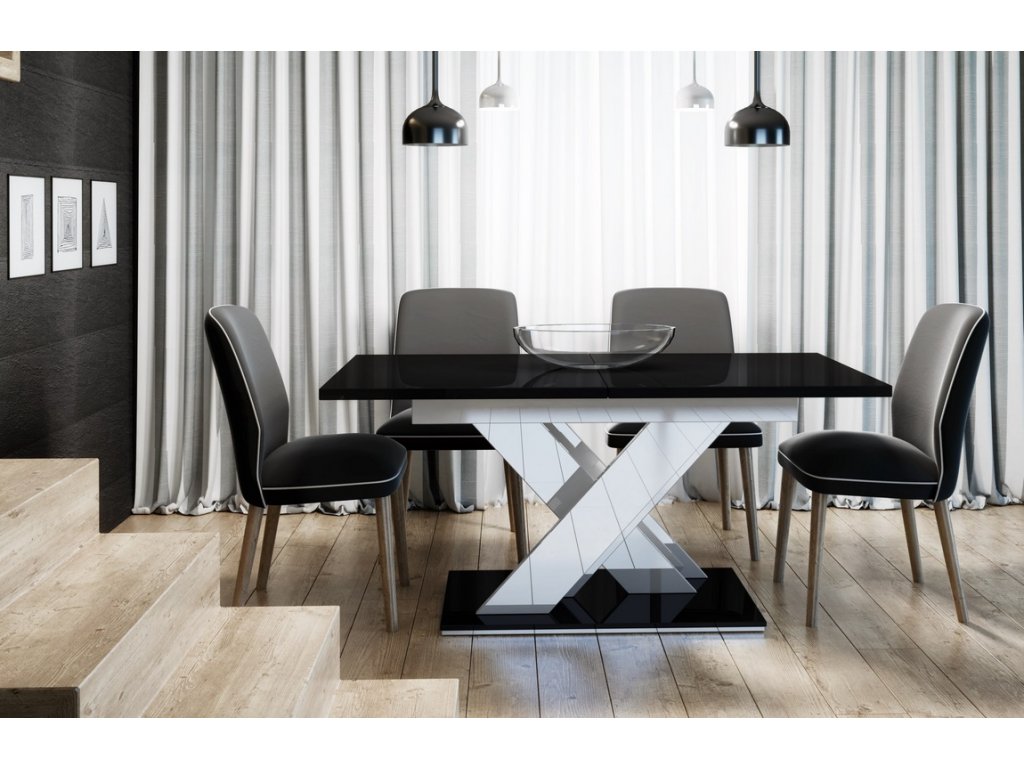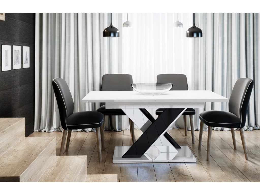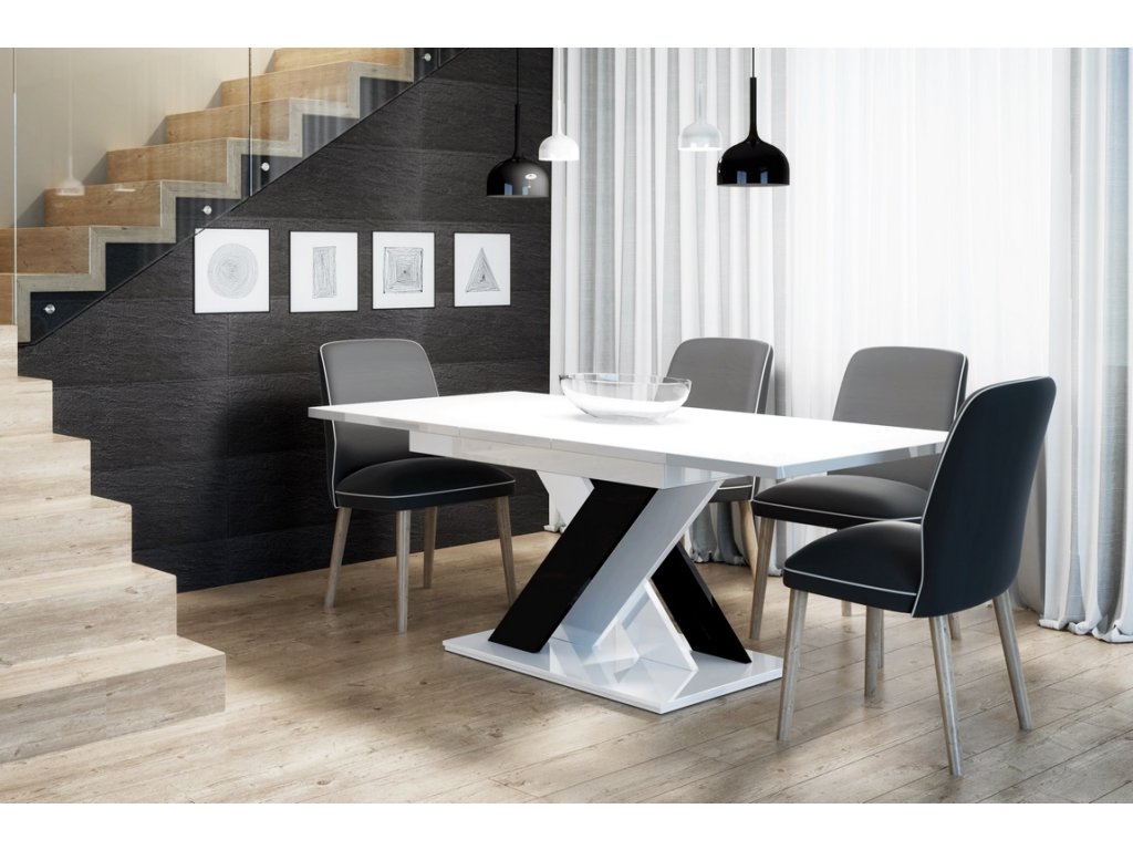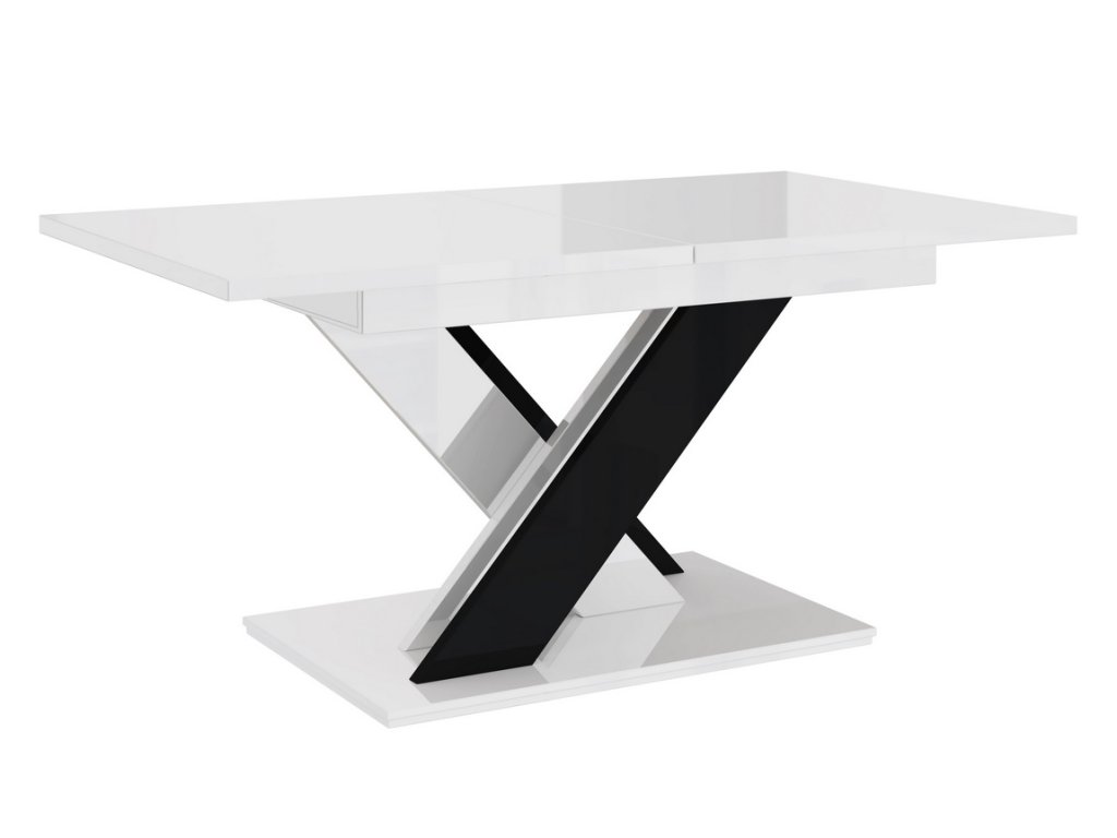 Jídelní rozkládací stůl BRAGA bílá lesk/černá lesk