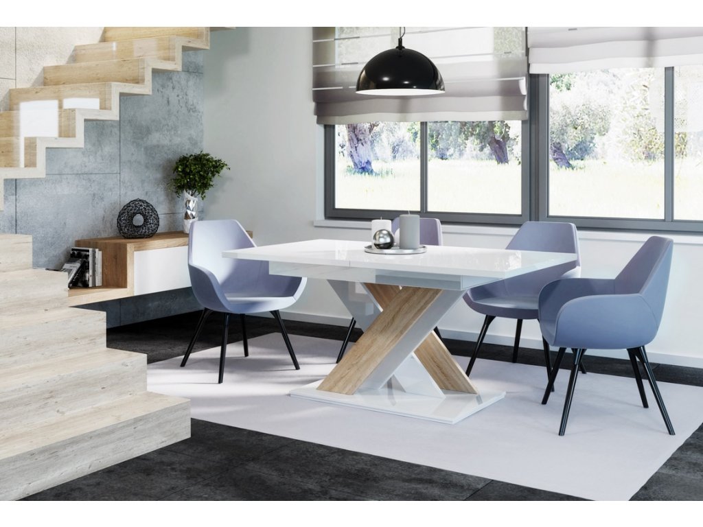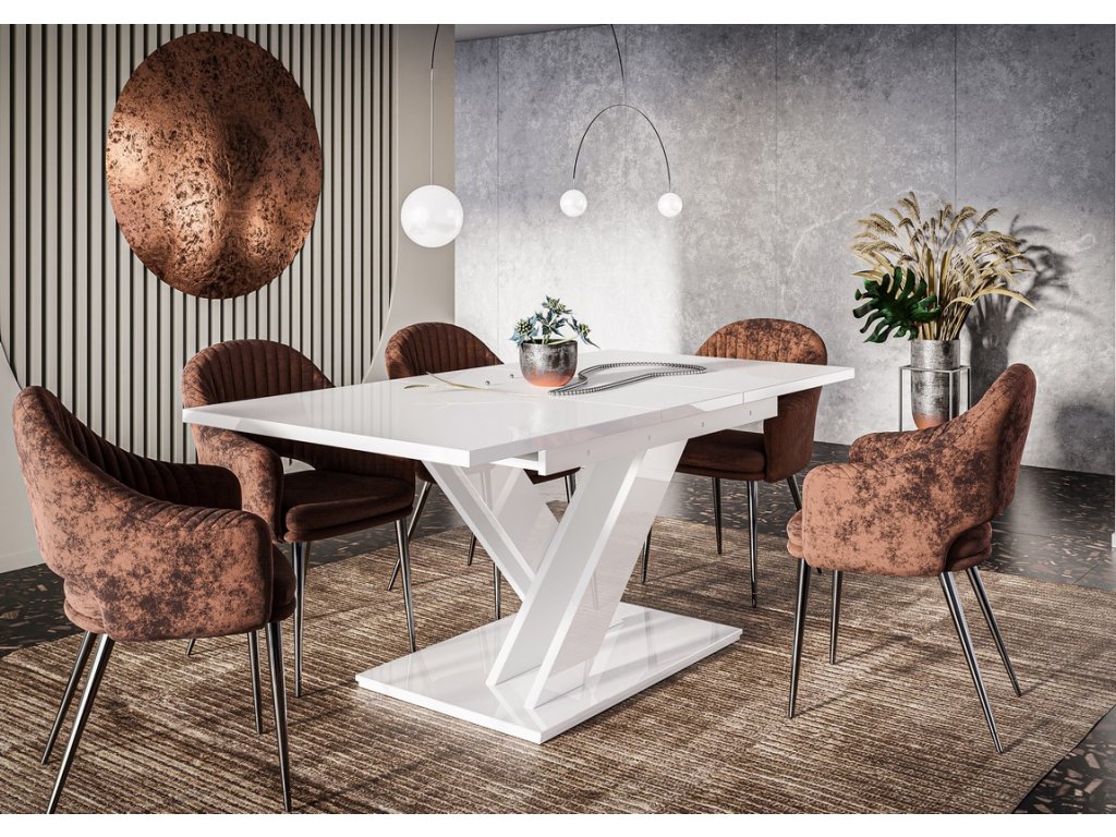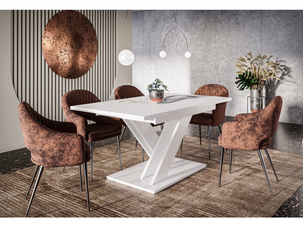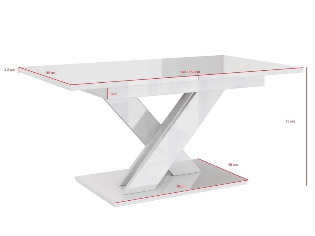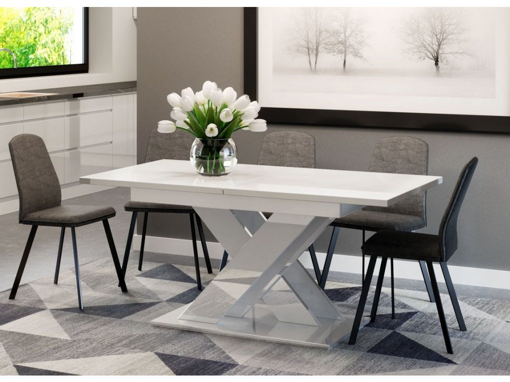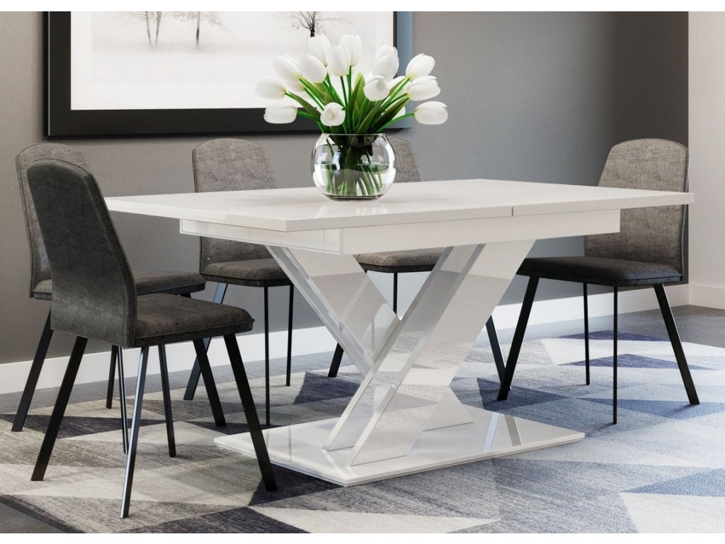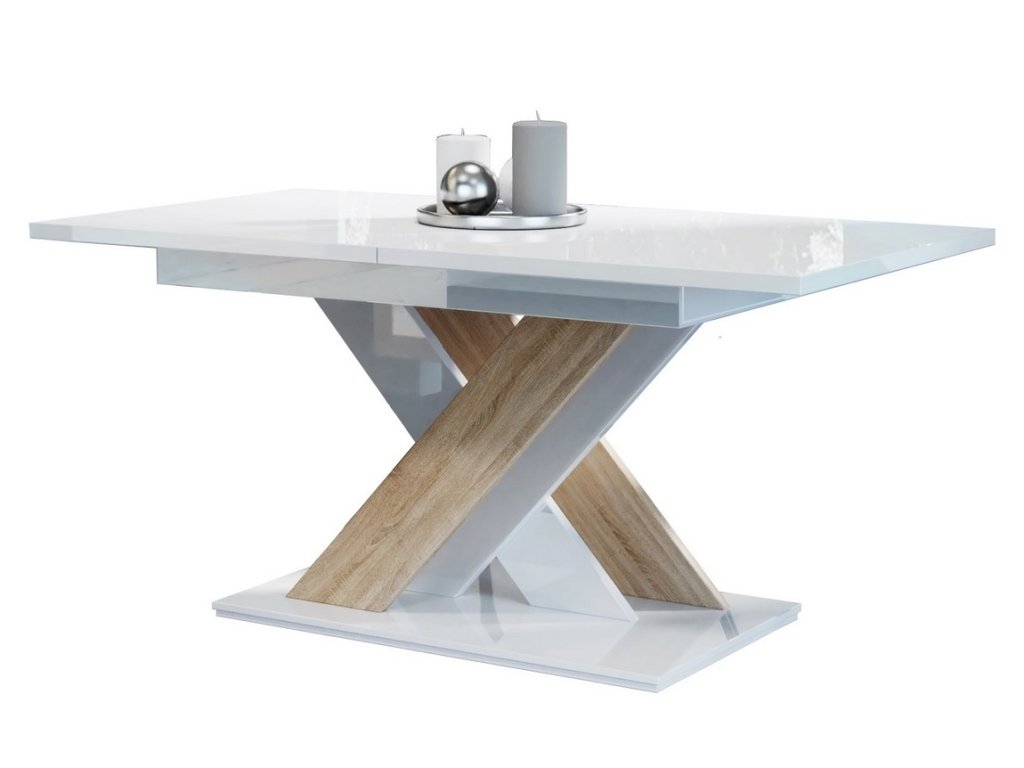 Jídelní rozkládací stůl BRAGA bílá lesk/černá lesk