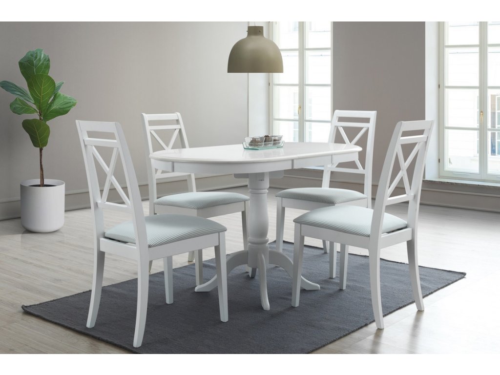 Elegantní jídelní stůl ve stylu provance. Zajímavý vzhled stolu vyzdvihují jemné tvary a dokonalé detaily. Tento kulatý stůl je vyroben z přírodního dřeva, deska je z kvalitní MDF v bílé barvě. Plocha stolu před rozložením je 100 x 100 cm, po rozložení 100 x 129 cm. Výška stolu je 75 cm. K tomuto stolu doporučujeme židle v naší nabídce.Additional parameters