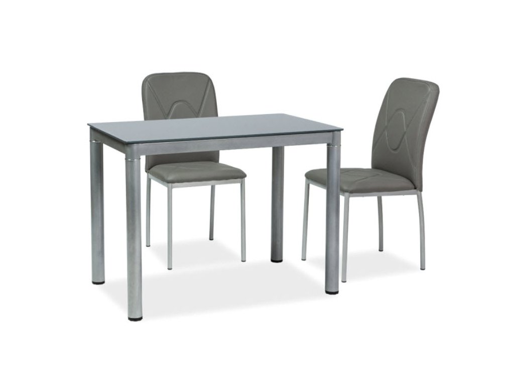 Moderní jídelní stůl v elegantním a praktickém provedení. Nohy stolu jsou vyrobeny z kovu, lakované šedou barvou, deska stolu je z tvrzeného skla v šedé barvě. Stůl je určen pro 4 osoby. K tomuto stolu doporučujeme židle z naší nabídky.Additional parameters