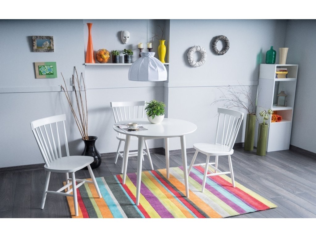 Jídelní kulatý stůl ve skandinávském stylu. Nohy stolu jsou vyrobeny z kvalitního přírodního dřeva, deska stolu je z MDF. Barevné provedení bílá. K tomuto stolu doporučujeme židle v naší nabídce. Dodáváme v demontovaném stavu.Additional parameters