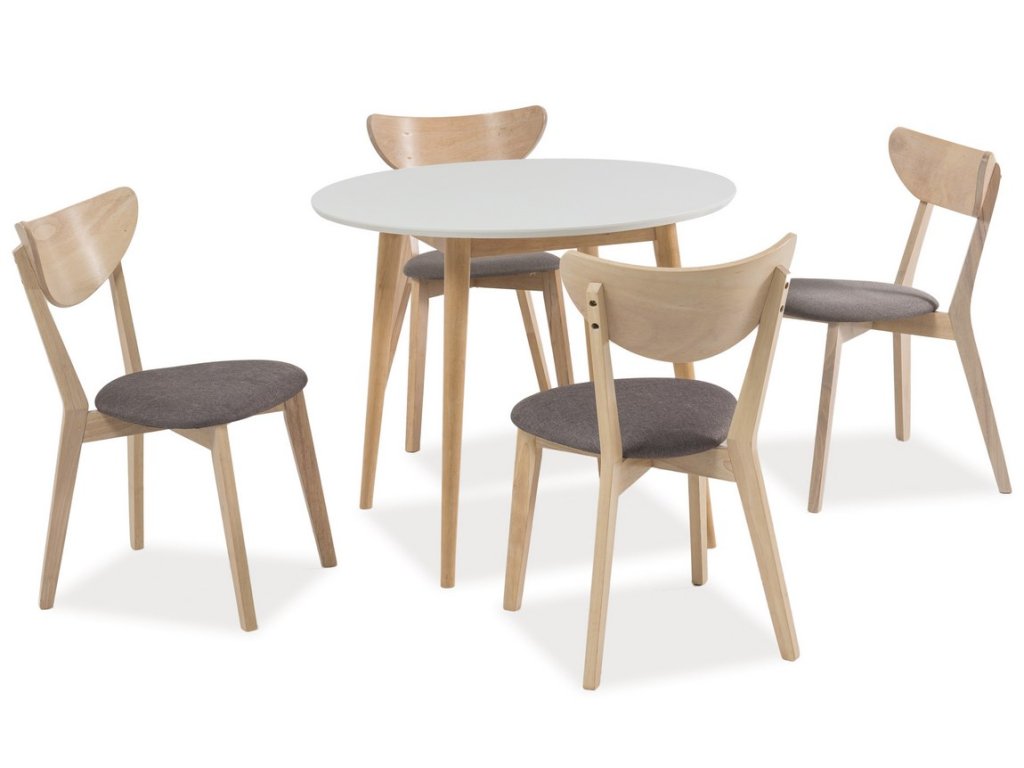 Jídelní kulatý stůl ve skandinávském stylu. Nohy stolu jsou vyrobeny z kvalitního přírodního dřeva v barvě dub bělený, deska stolu je z MDF v barvě bílé. K tomuto stolu doporučujeme židle v naší nabídce. Dodáváme v demontovaném stavu.Additional parameters