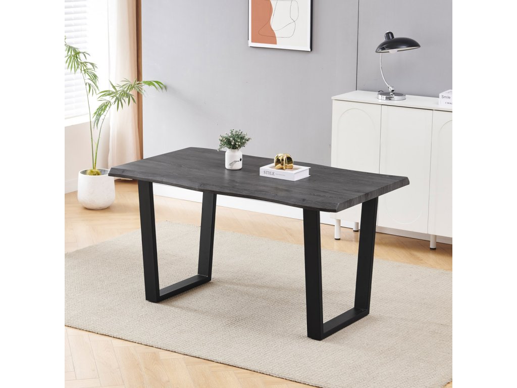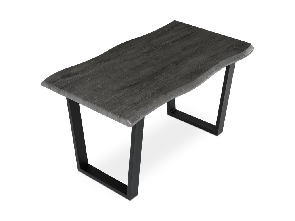 Stůl jídelní, 140x80x75 cm, MDF deska, dekor šedý dub, kovová nohy ve tvaru U, černý matný lak
