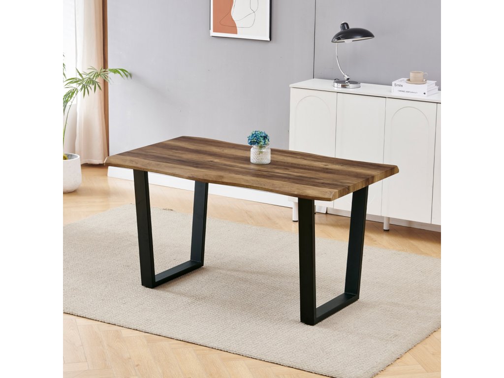 Stůl jídelní, 140x80x75 cm, MDF deska, dekor staré dřevo, kovová nohy ve tvaru U, černý matný lak