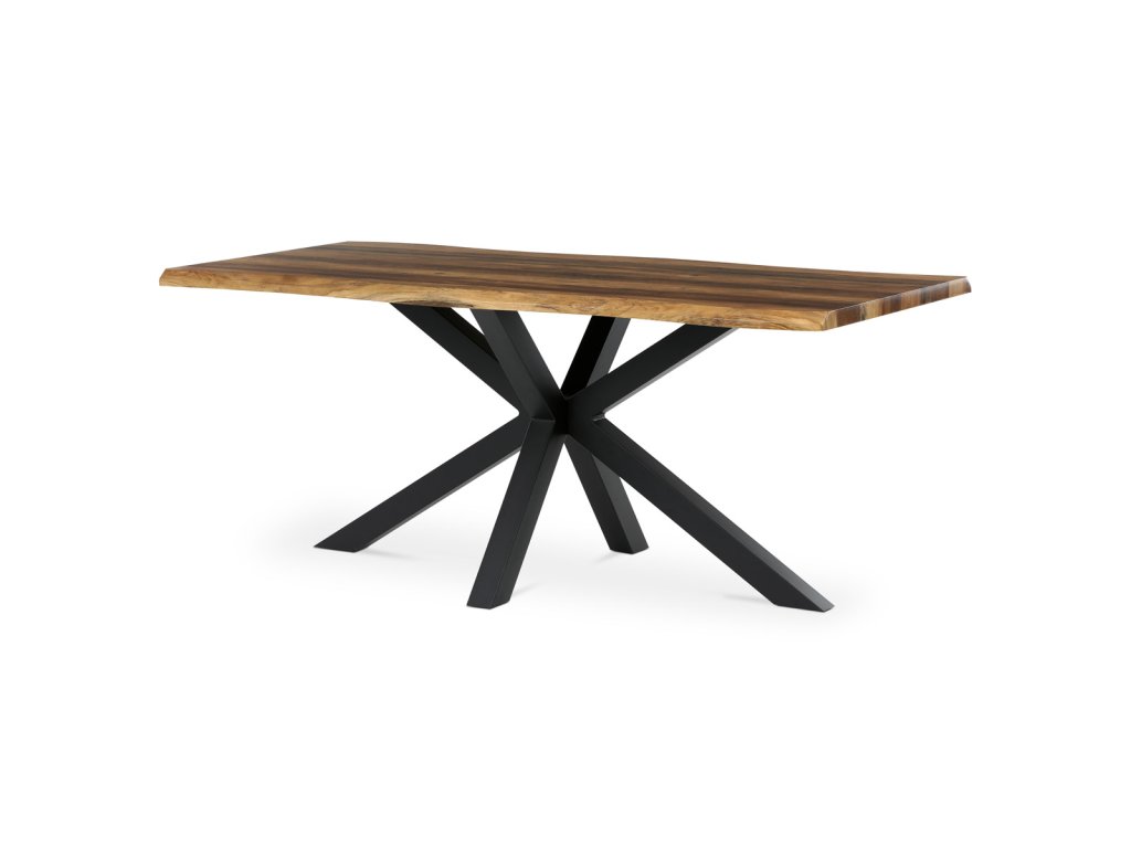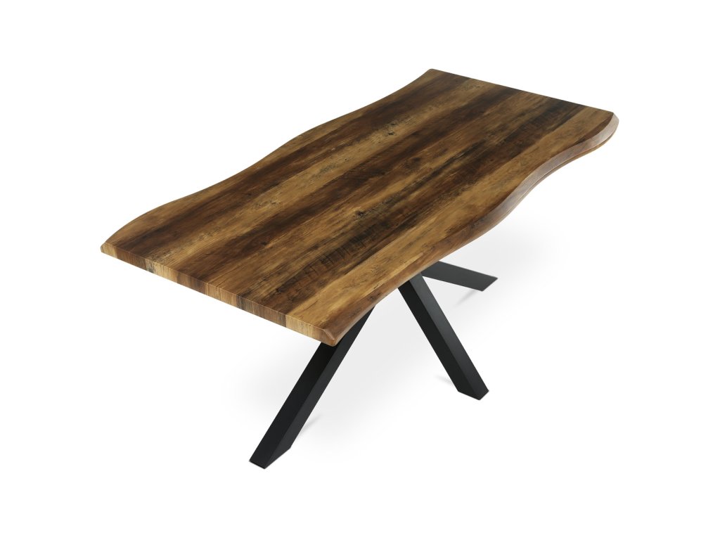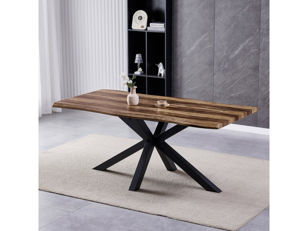 Stůl jídelní, 180x90x75 cm, MDF deska, dekor staré dřevo, kovová noha ve tvaru hvězdy, černý lak