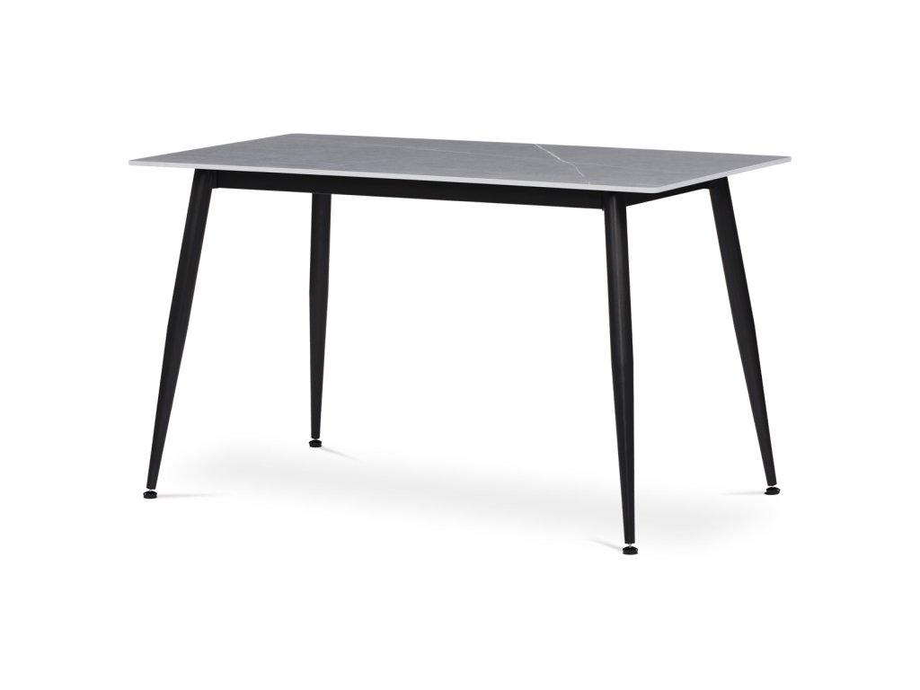 Stůl jídelní 130x70x76 cm, deska slinutý kámen v imitaci matného mramoru, černé kovové nohy