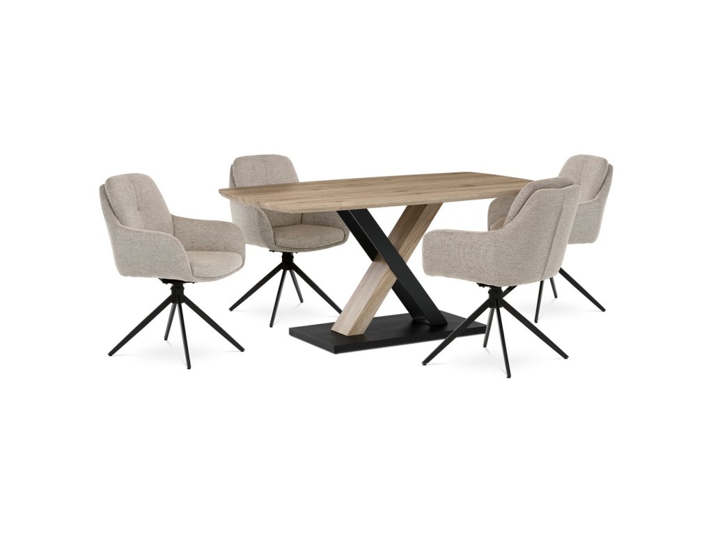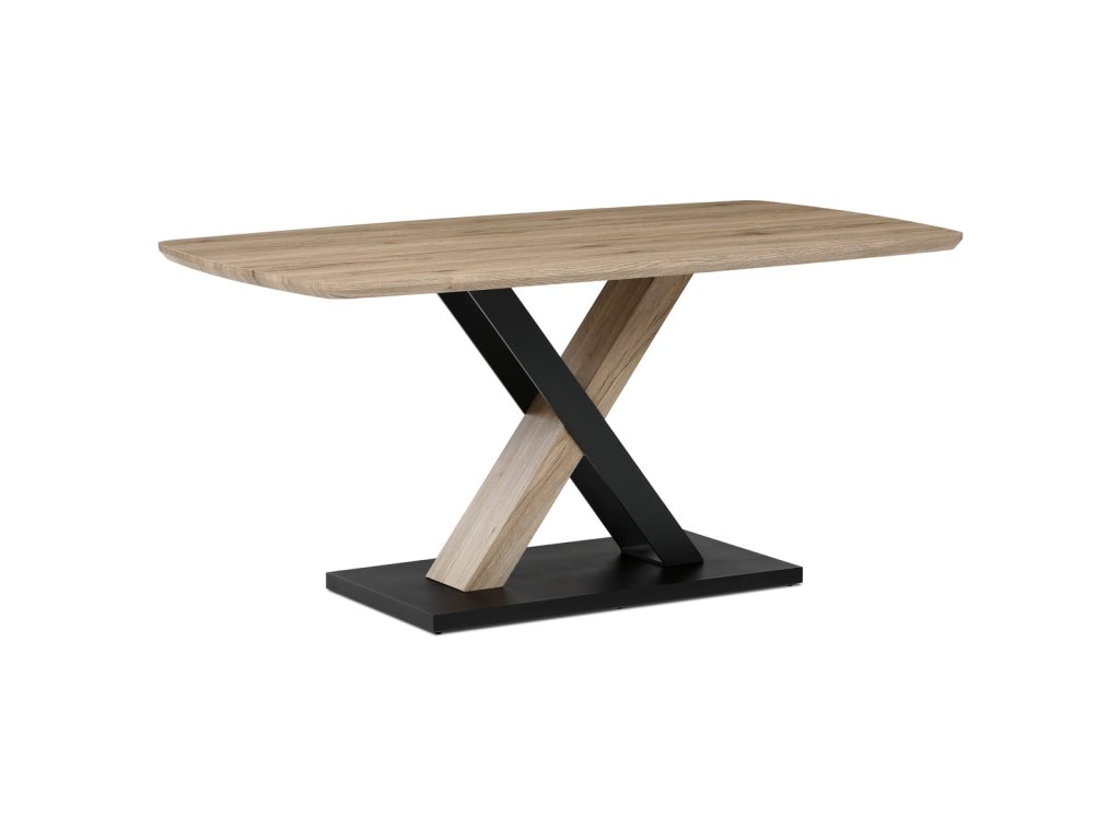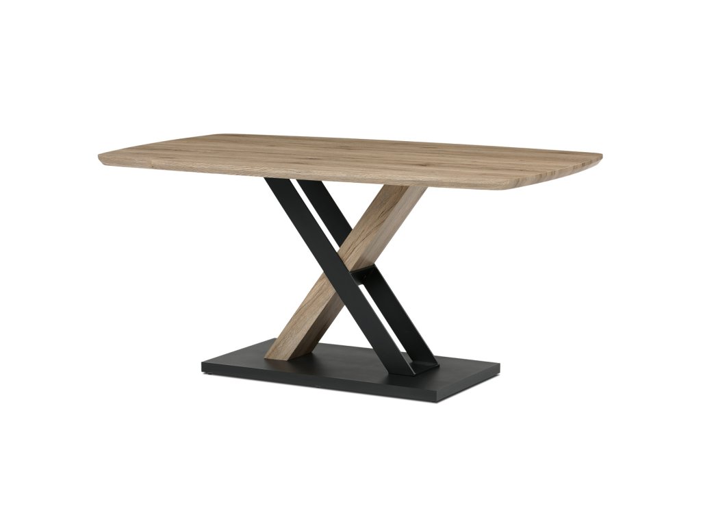 Stůl jídelní 160x90cm, MDF, 3D dekor dub san remo, kovové nohy, černý lak.