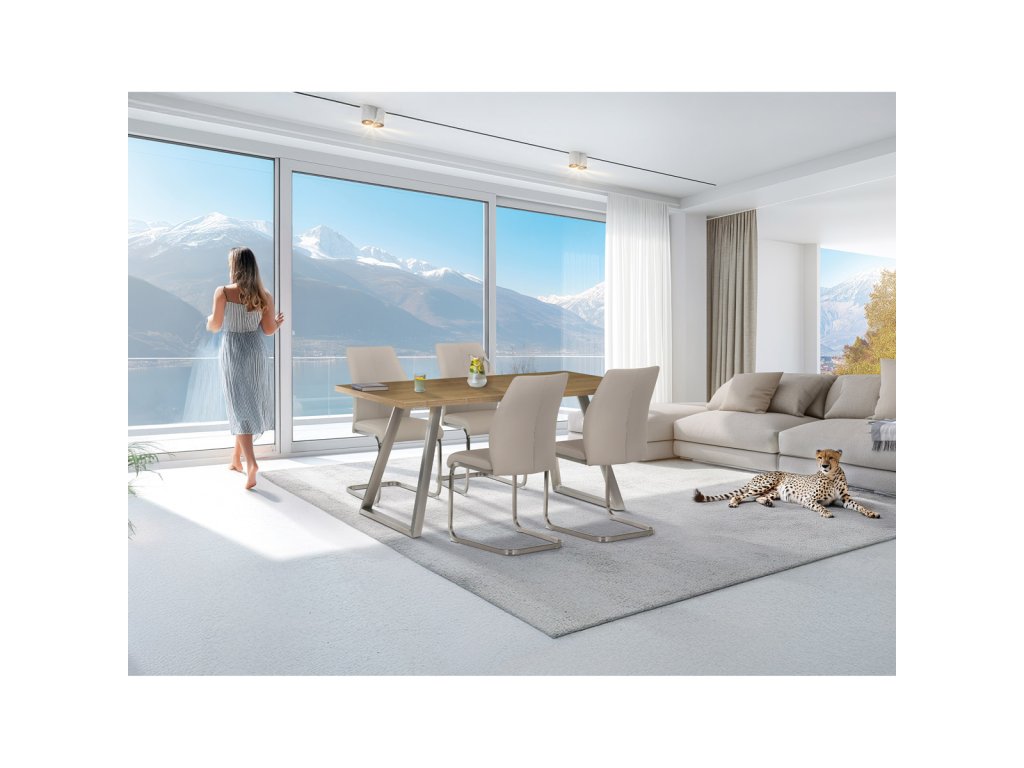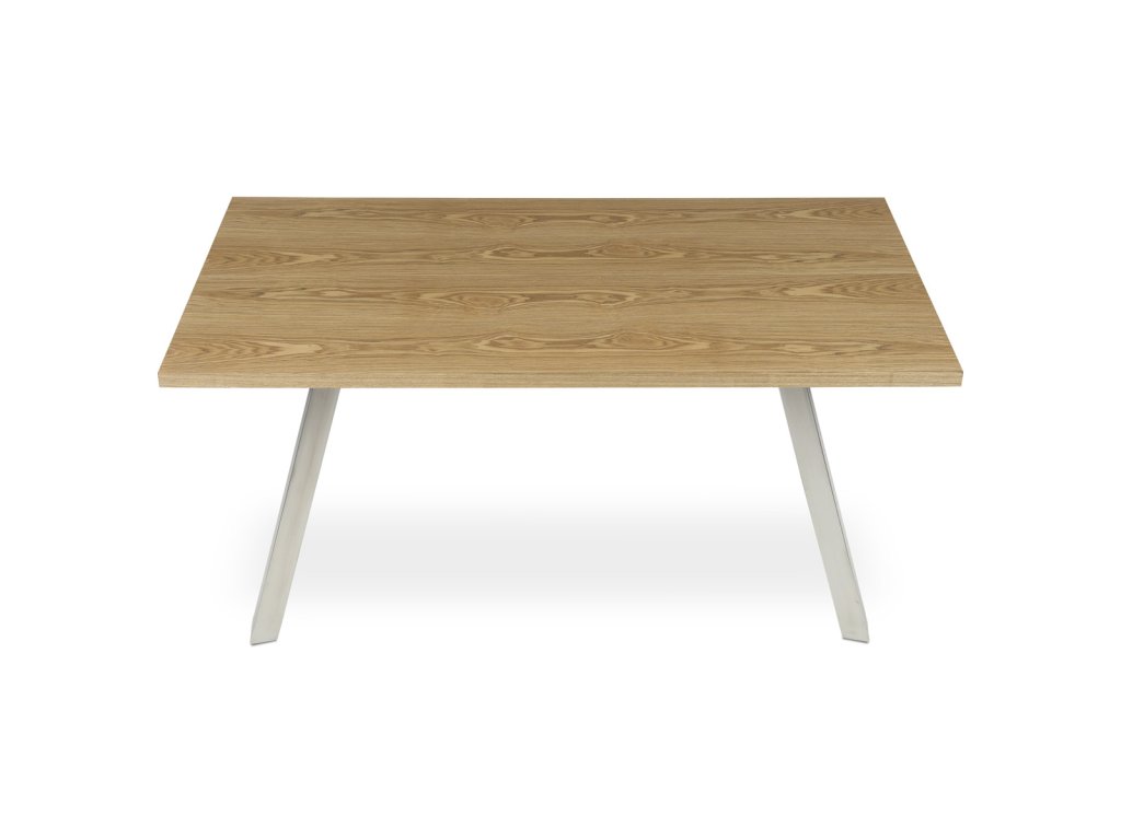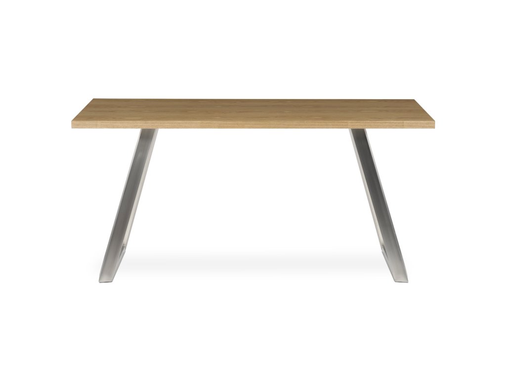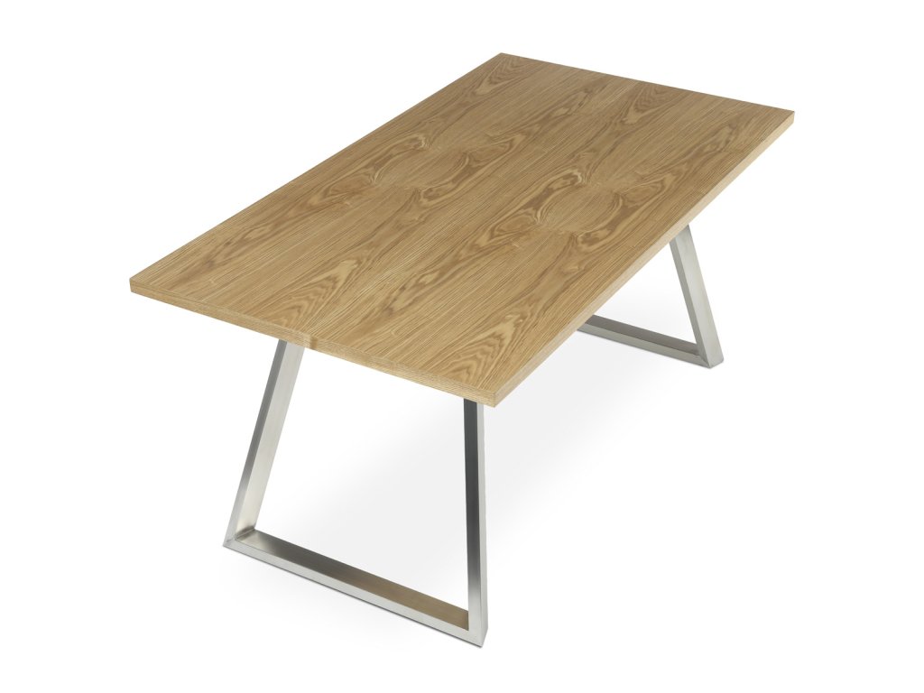 Stůl jídelní 160x90cm, MDF+ dýha, odstín dub, kovové nohy, broušený nerez.