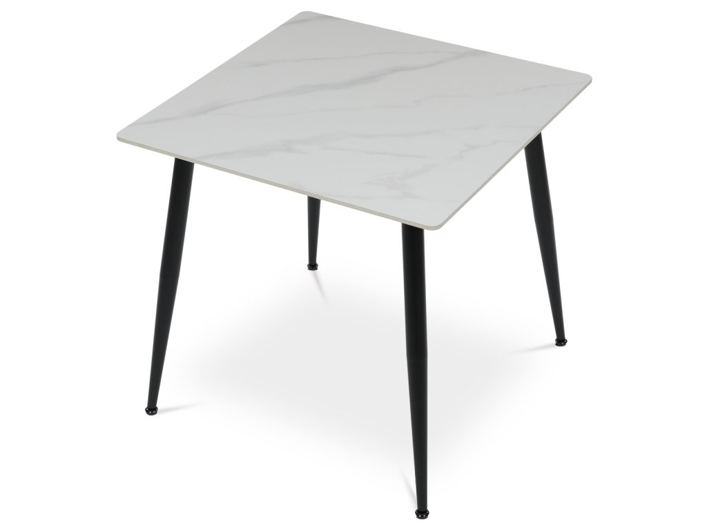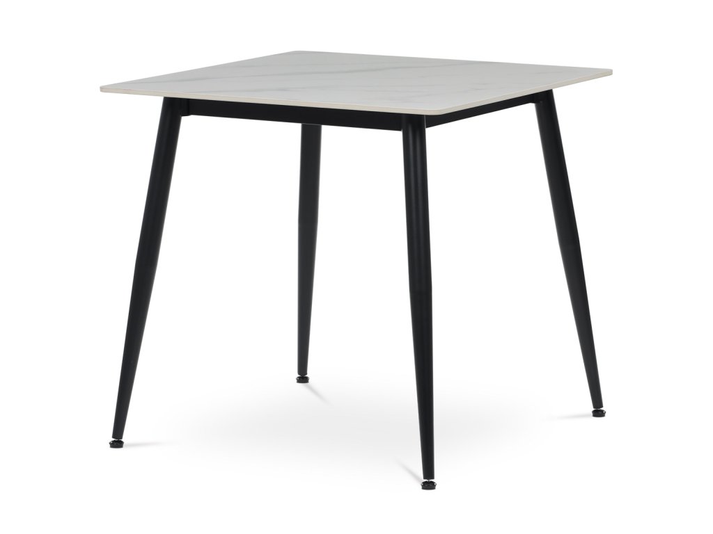 Stůl jídelní 80x80 cm, keramická deska bílý mramor, černé kovové nohy