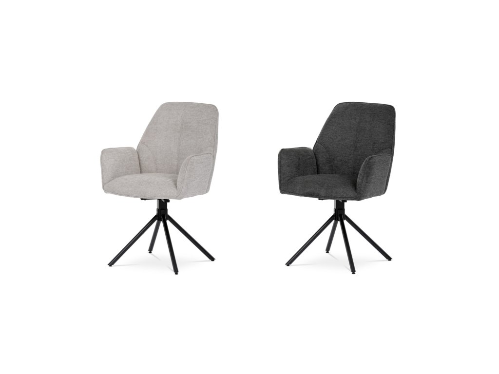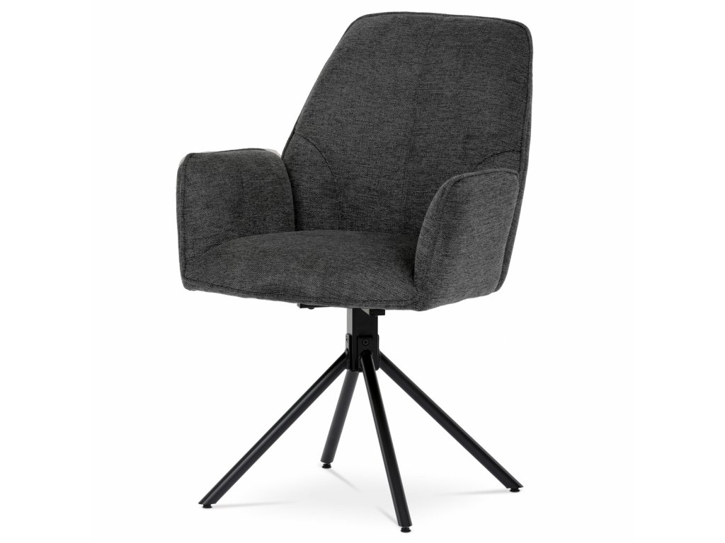 Jídelní židle tmavě šedá látka, područky, otočný mechanismus 180°, černý kov