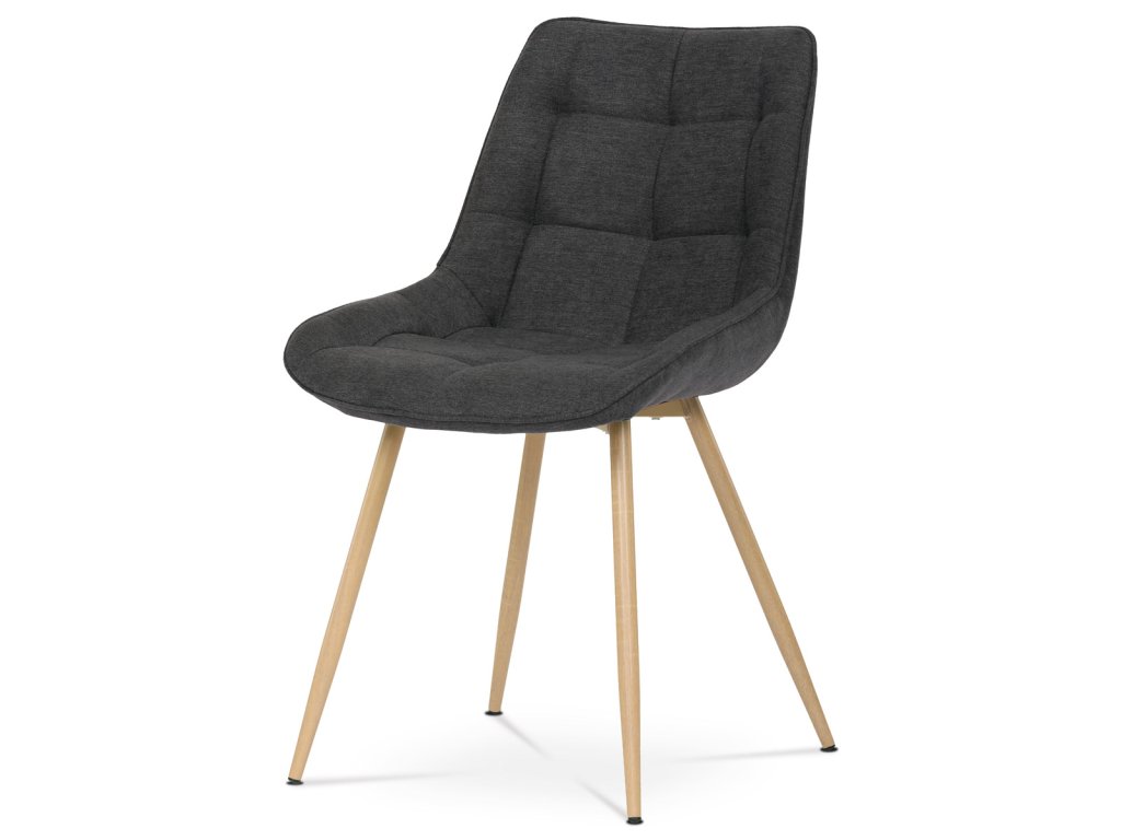 Židle jídelní, černá látka, kovové nohy, 3D dekor dub