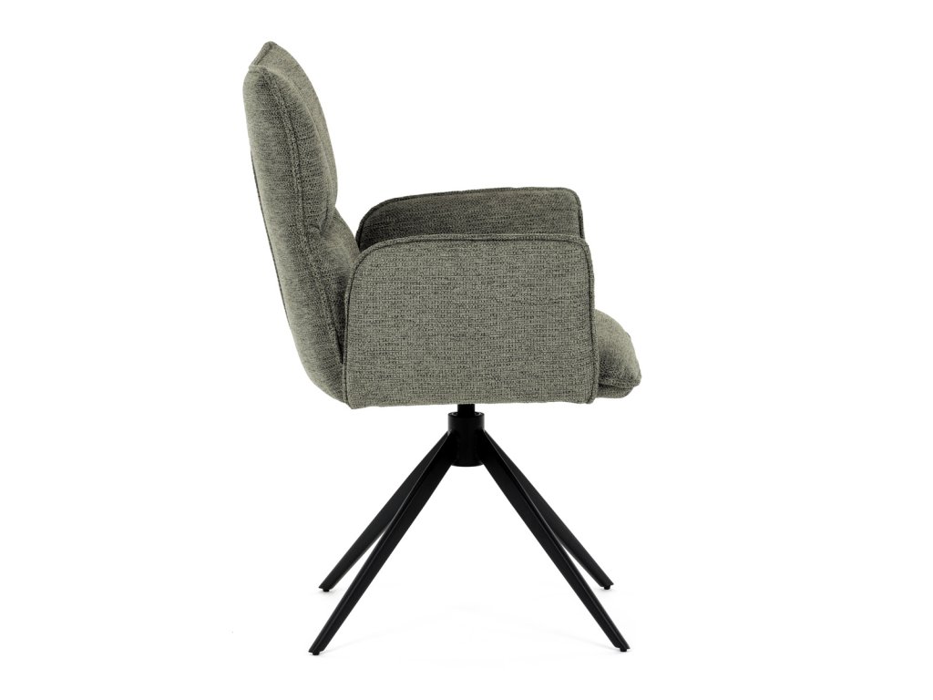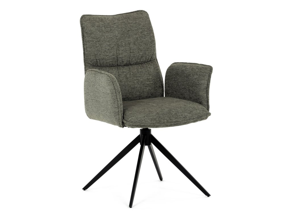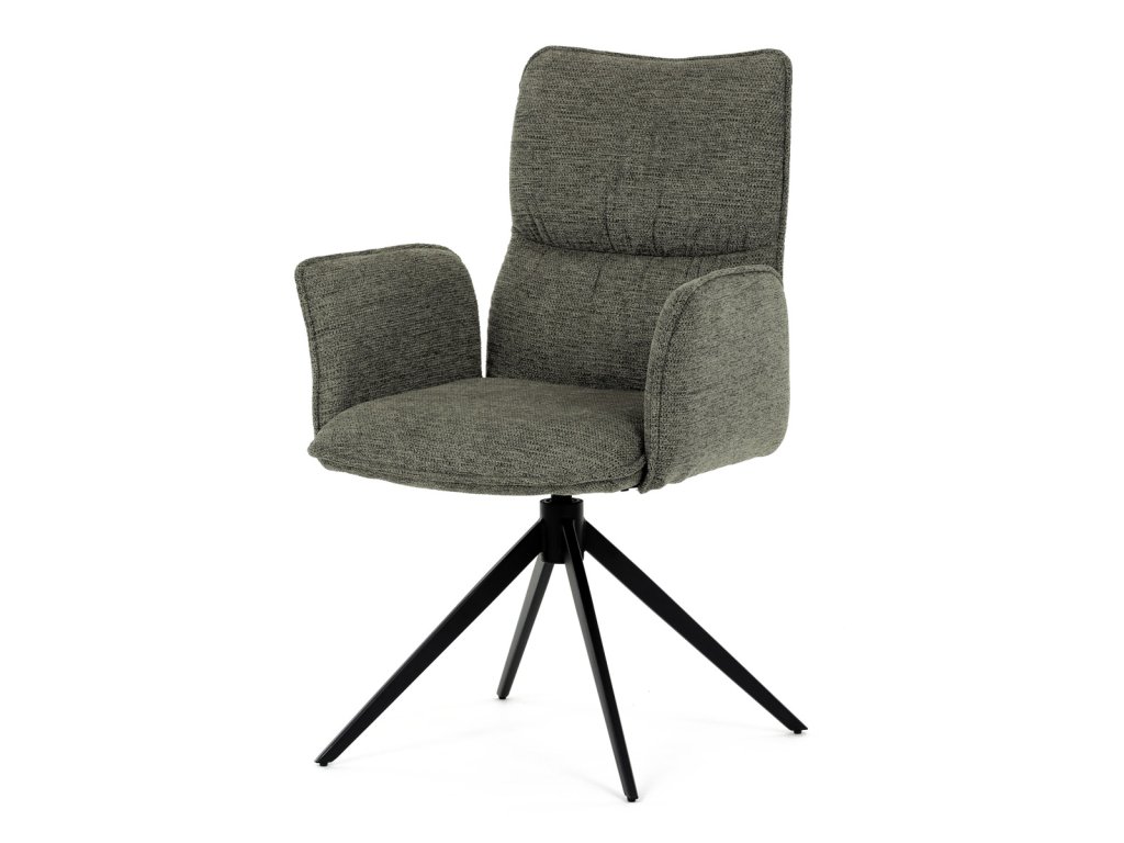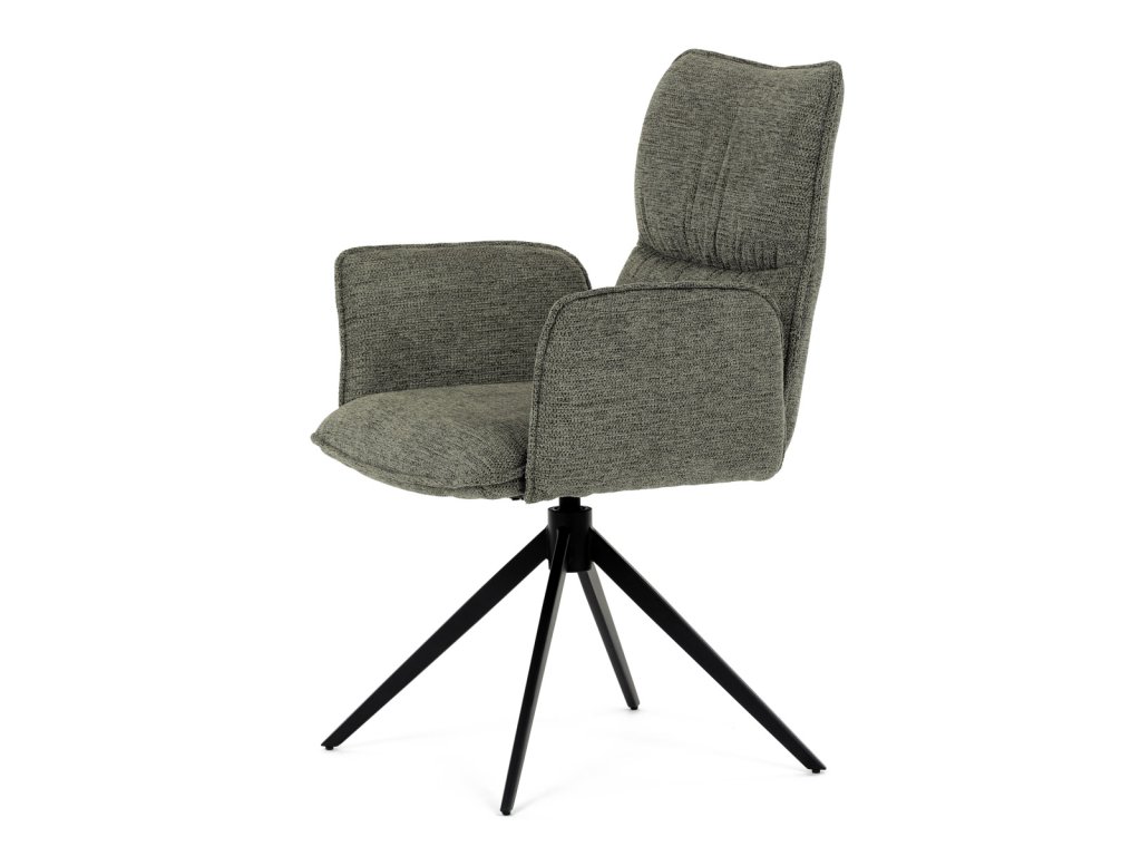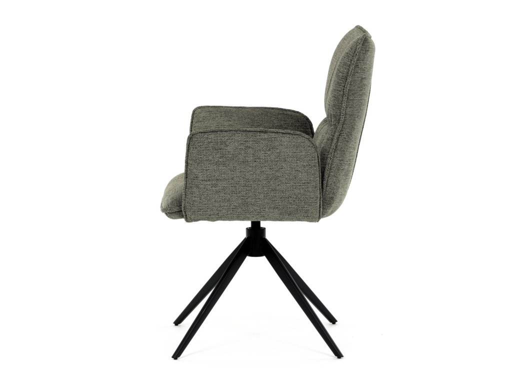 Židle jídelní, zelená látka, 360° vratný mechanismus, černý kov