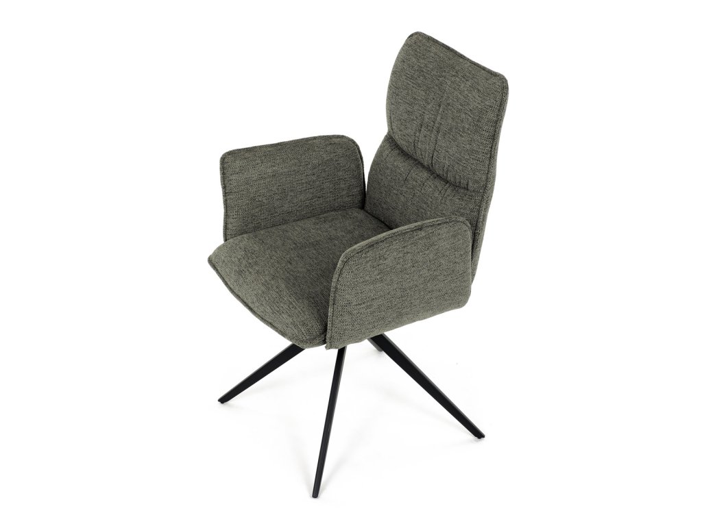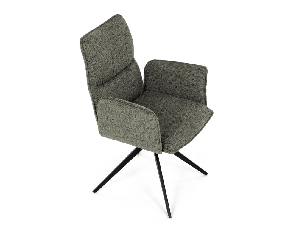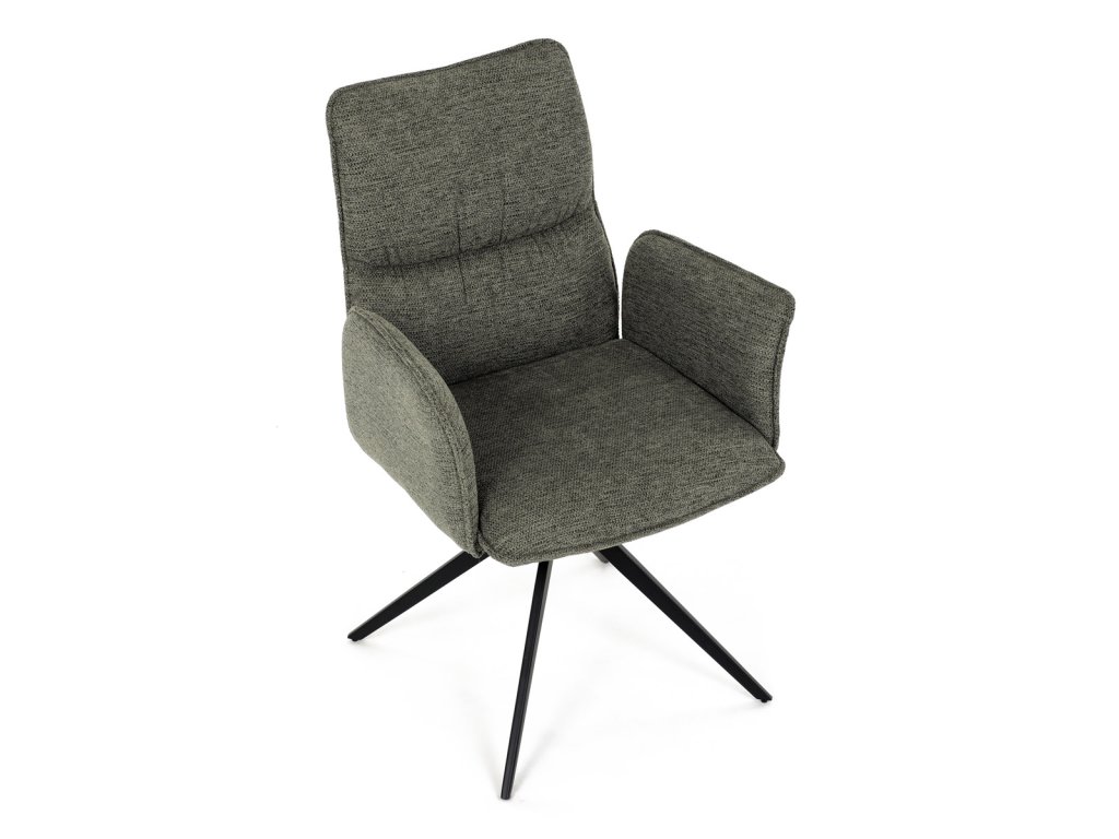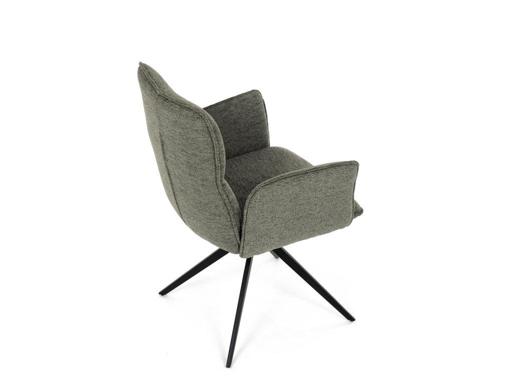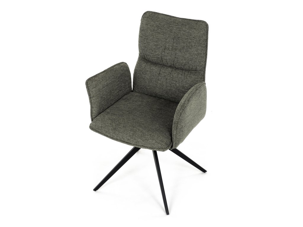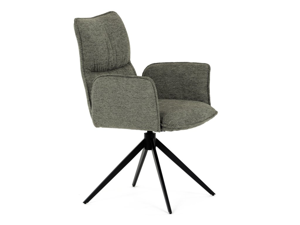 Židle jídelní, zelená látka, 360° vratný mechanismus, černý kov