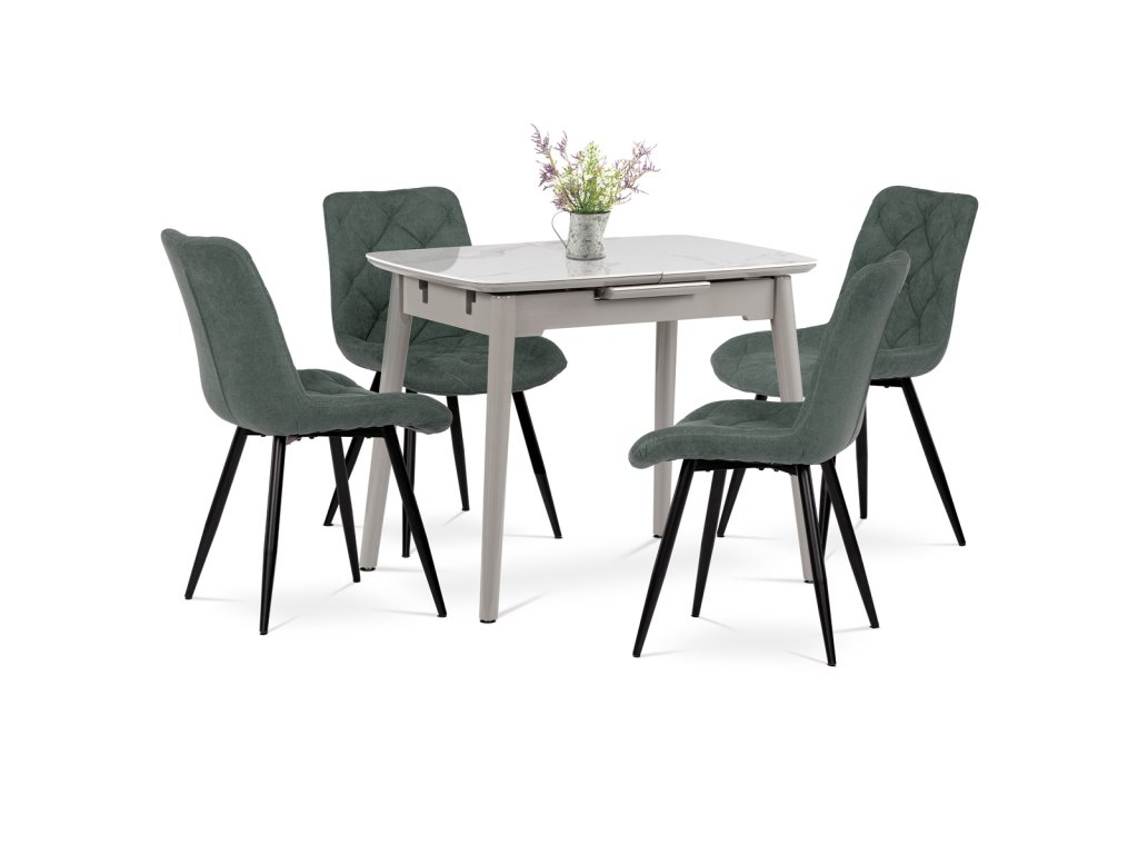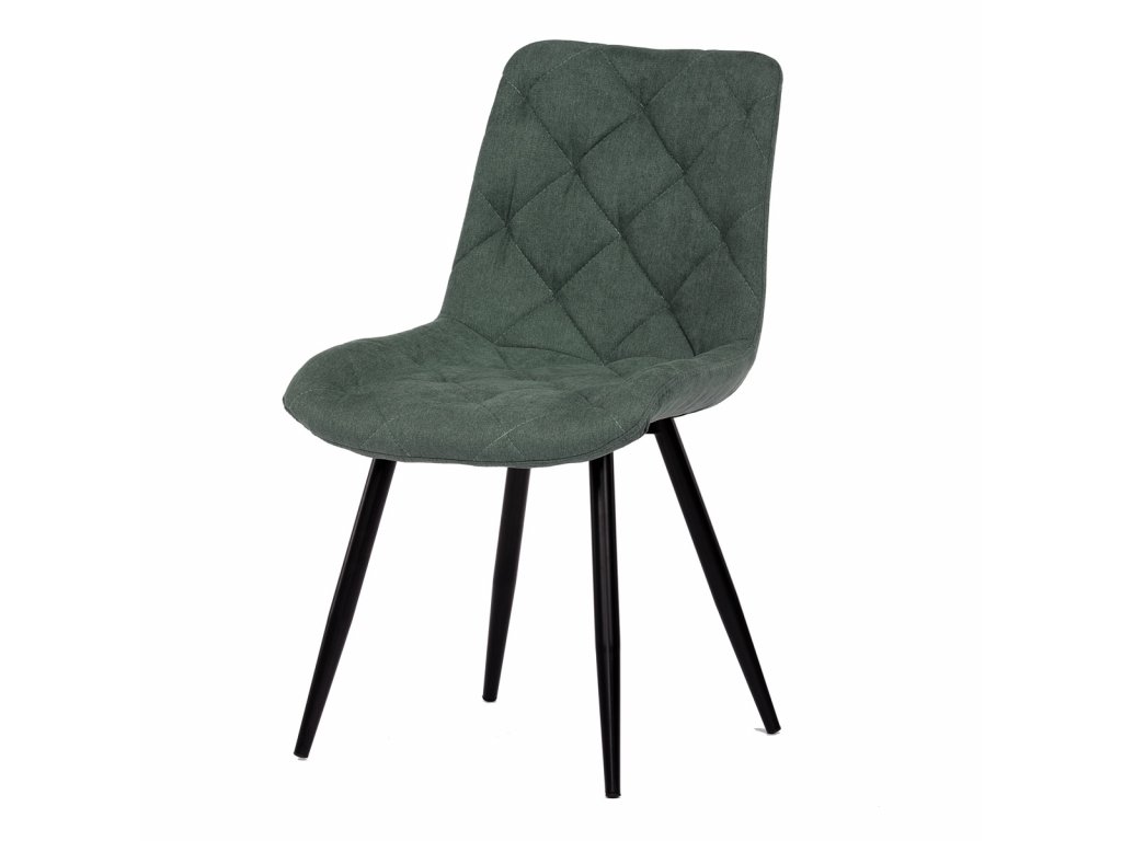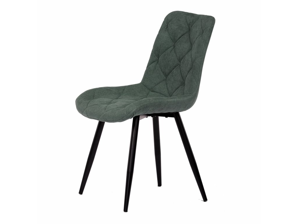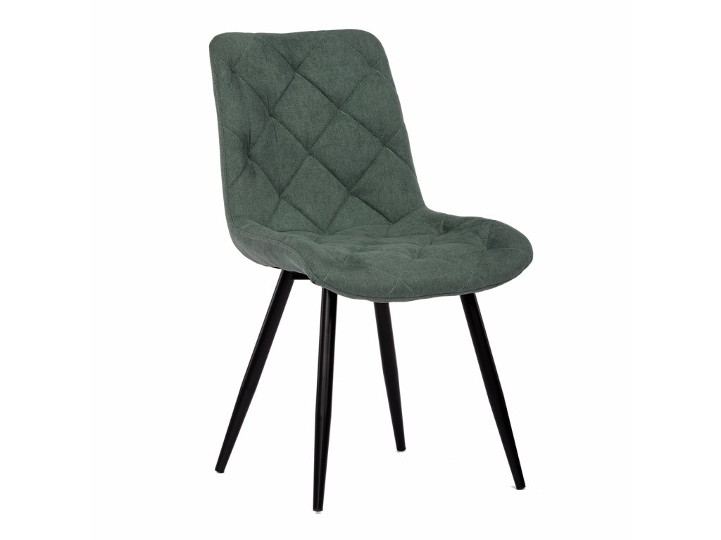 Židle jídelní, zelená látka, nohy černý kov
