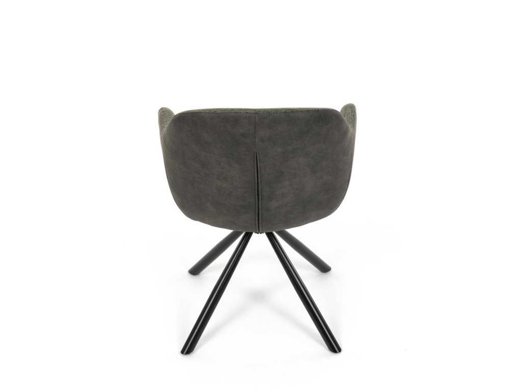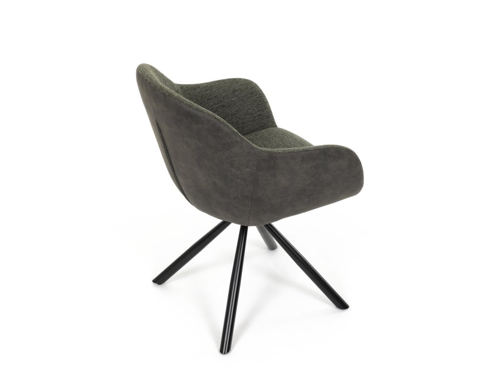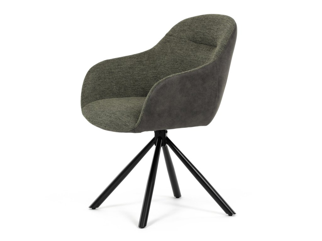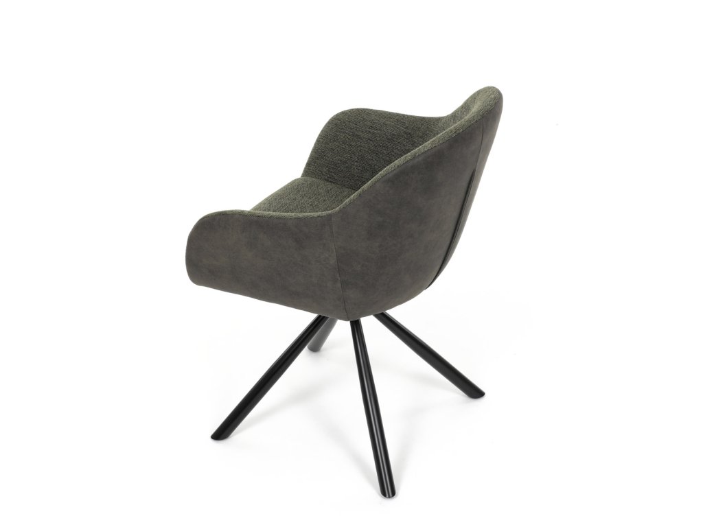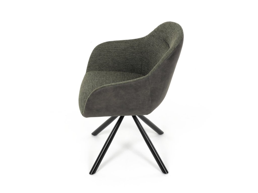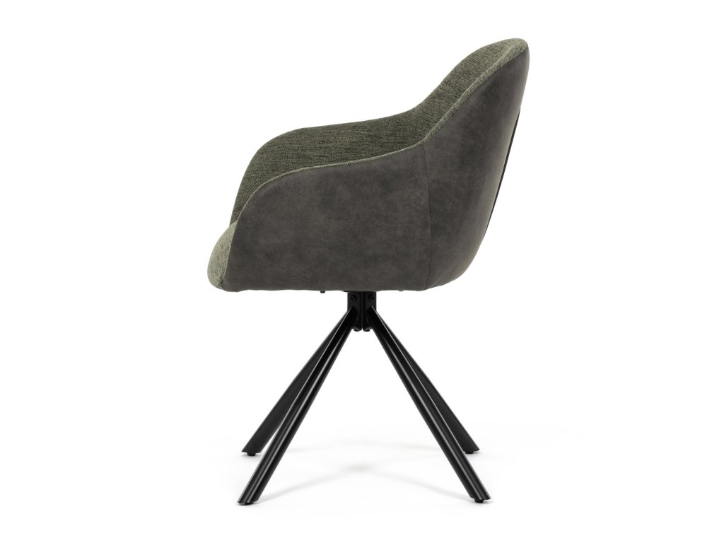 Židle jídelní, zelená látka a tmavě šedá látka v dekoru vintage kůže, černý kov, otočná P90°+ L90° s vratným mechanismem