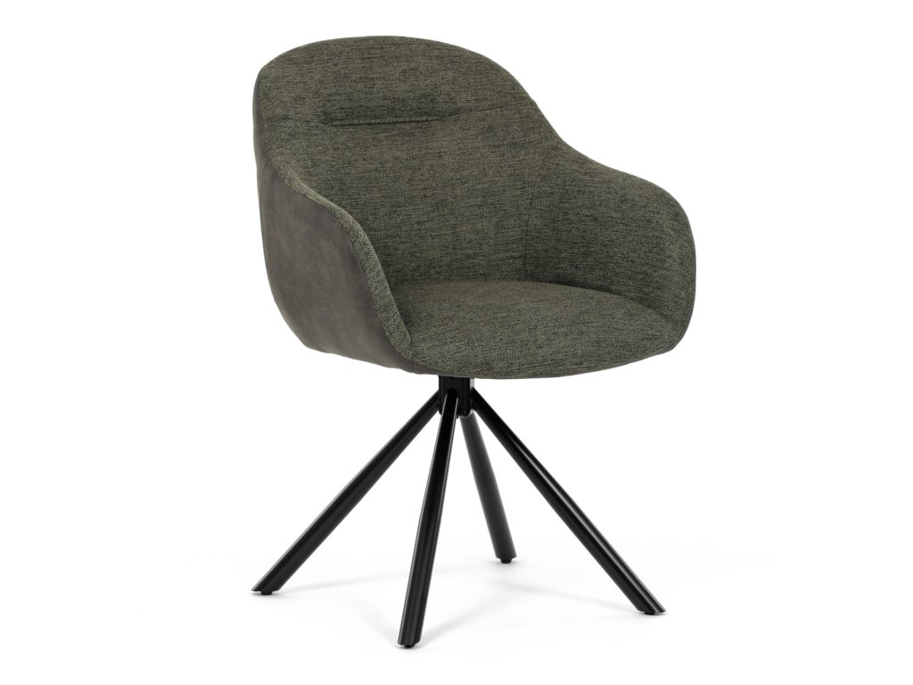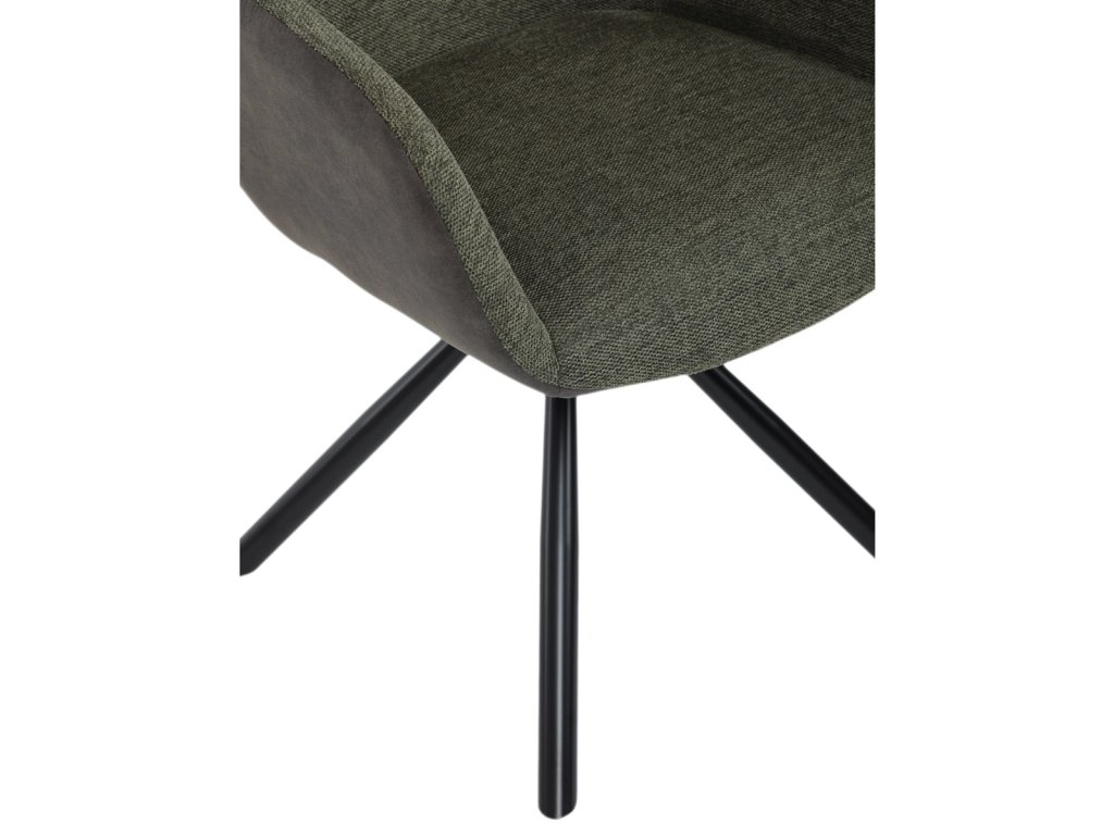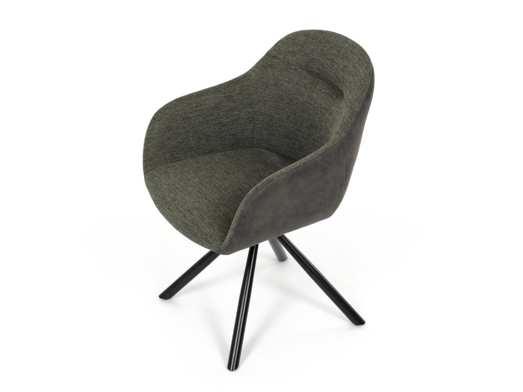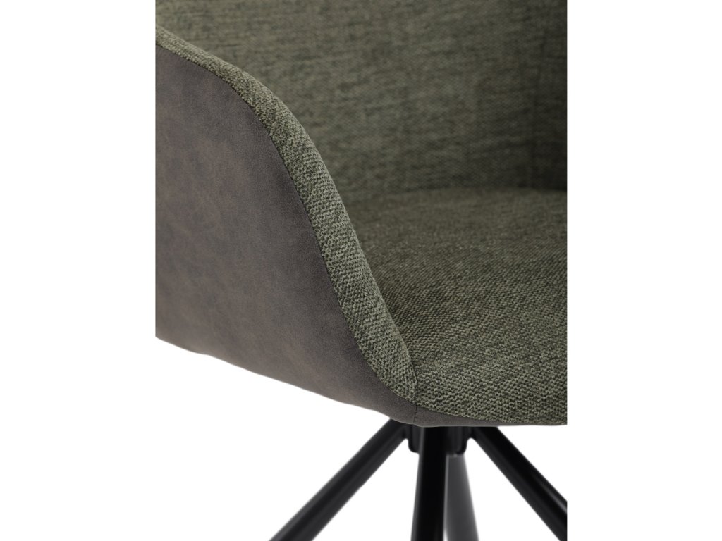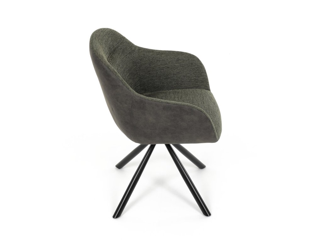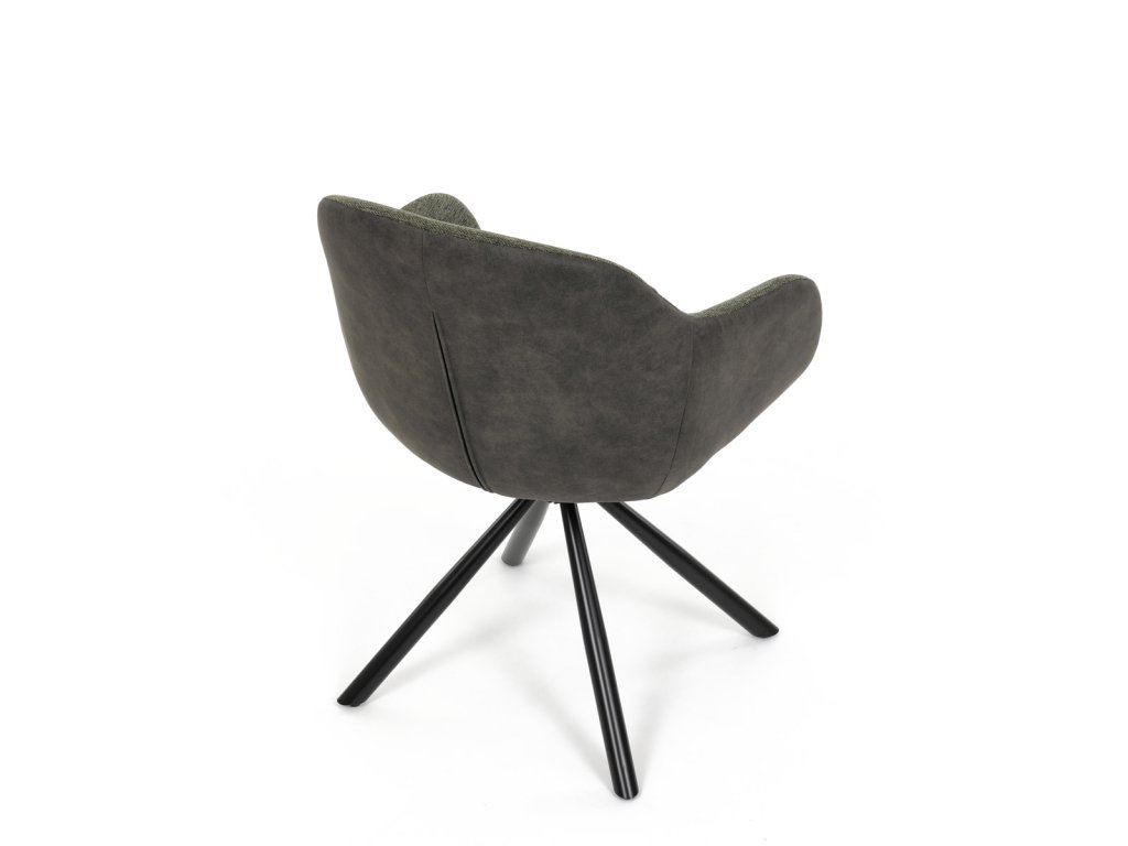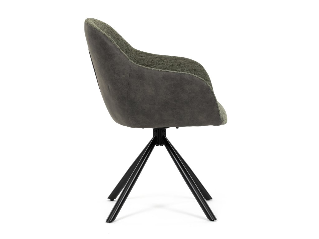 Židle jídelní, zelená látka a tmavě šedá látka v dekoru vintage kůže, černý kov, otočná P90°+ L90° s vratným mechanismem