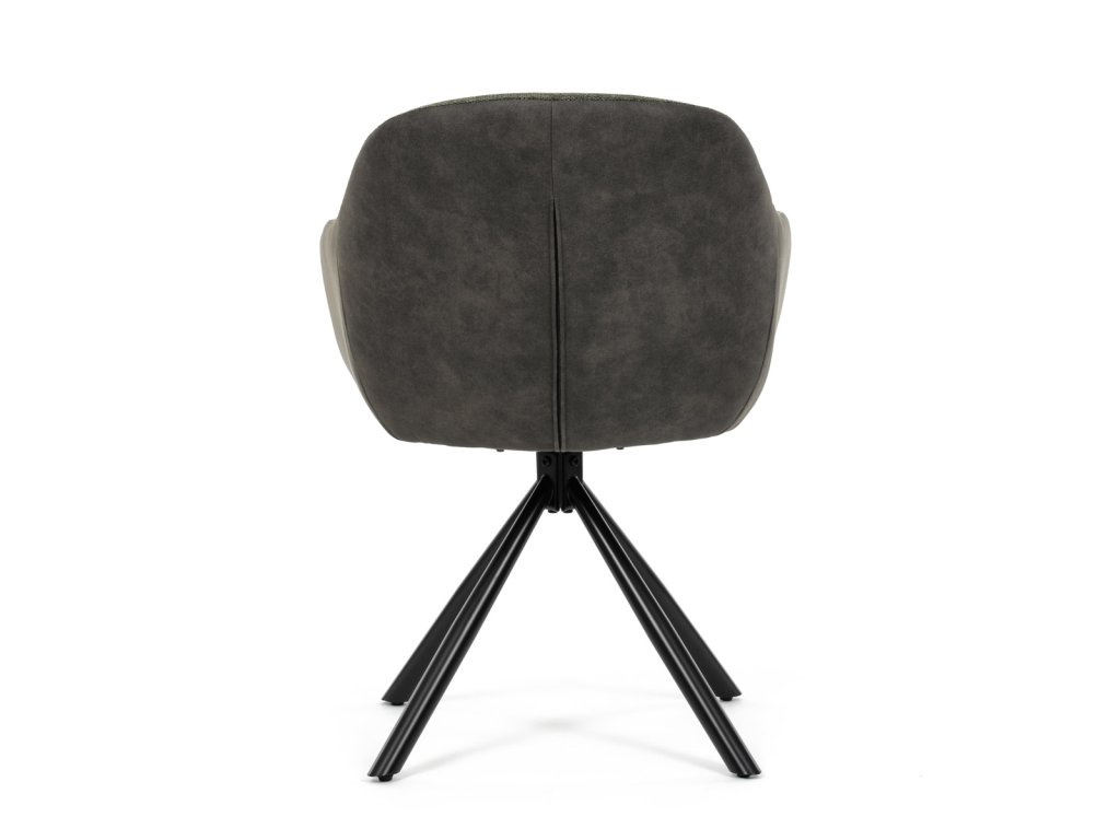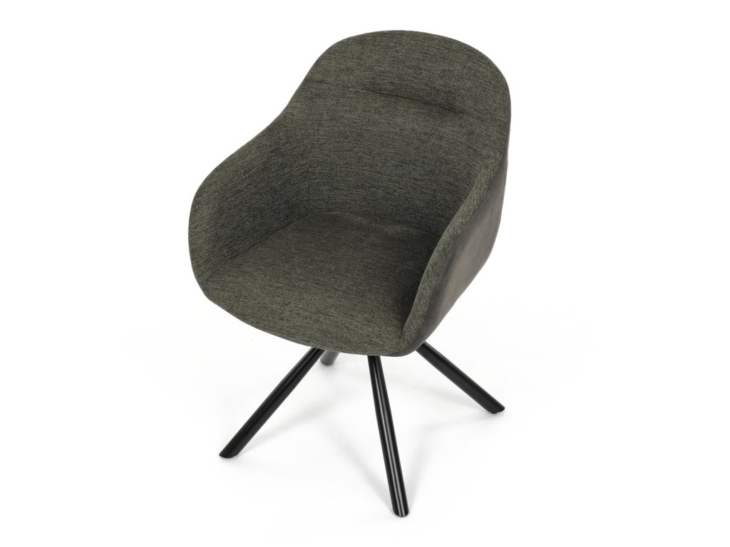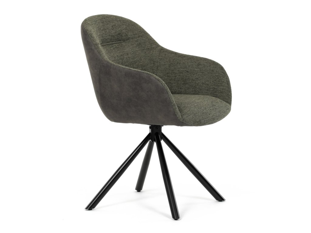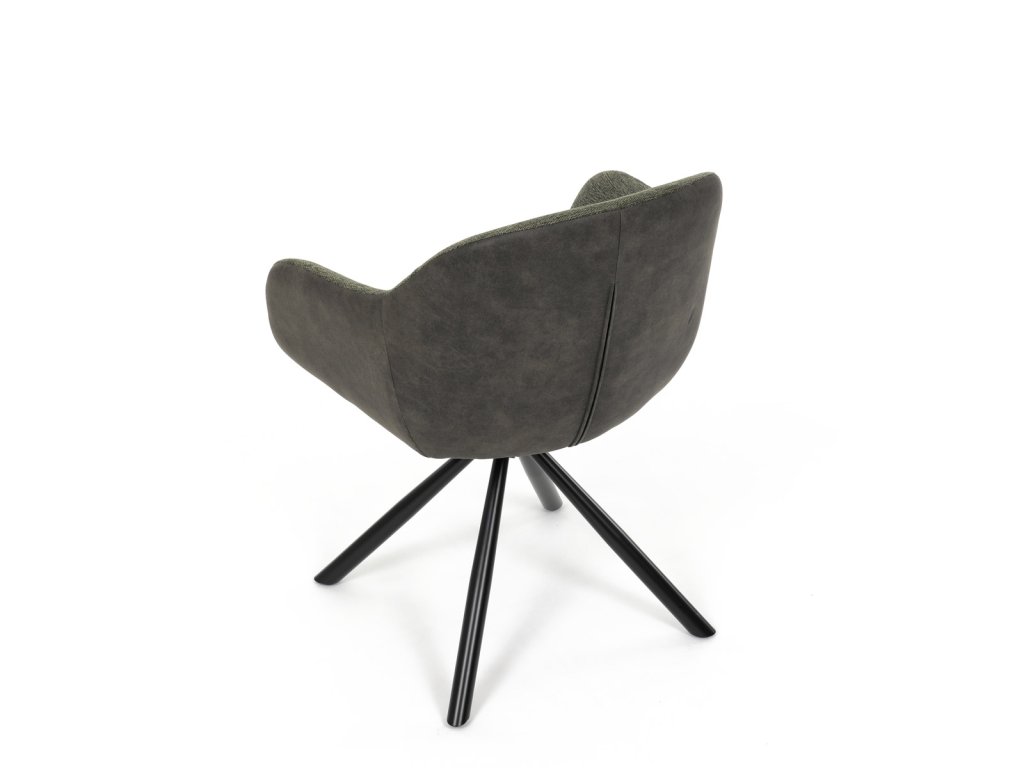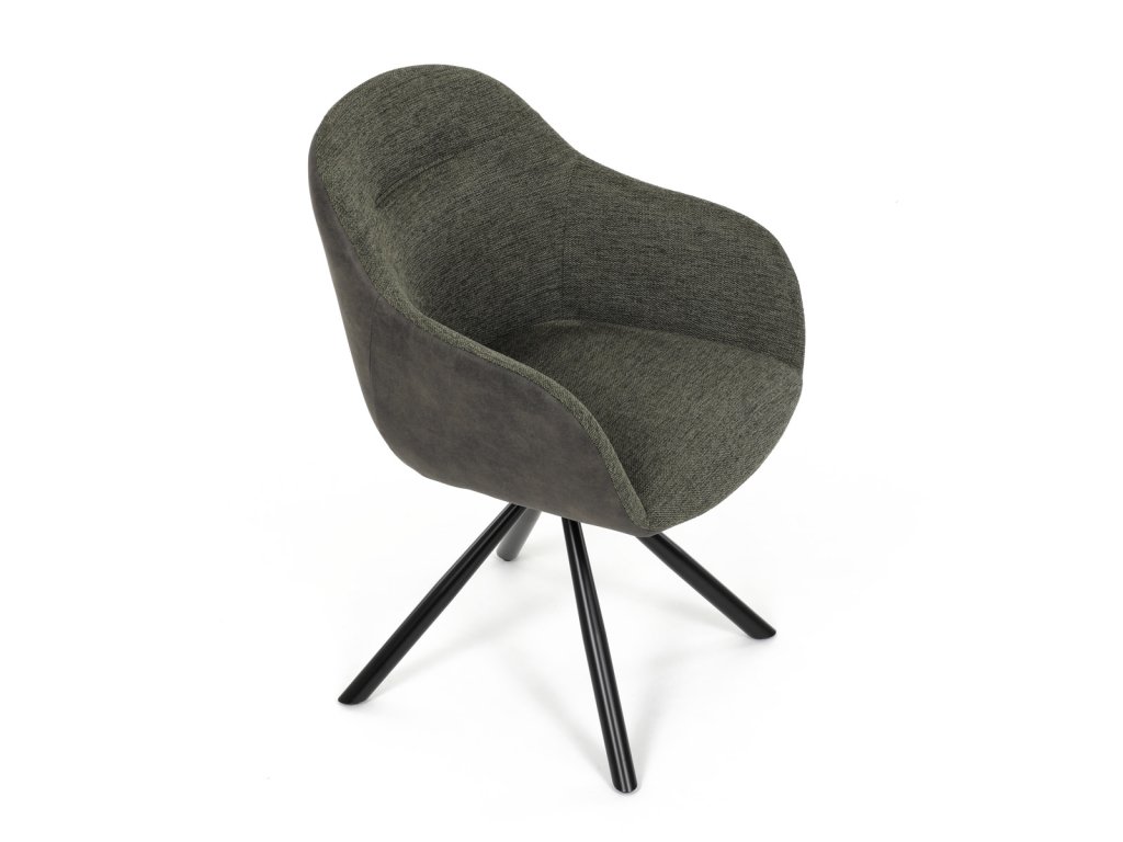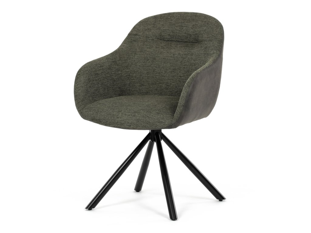 Židle jídelní, zelená látka a tmavě šedá látka v dekoru vintage kůže, černý kov, otočná P90°+ L90° s vratným mechanismem