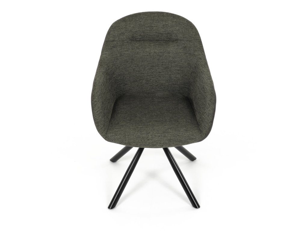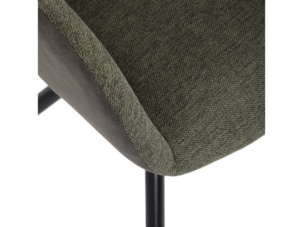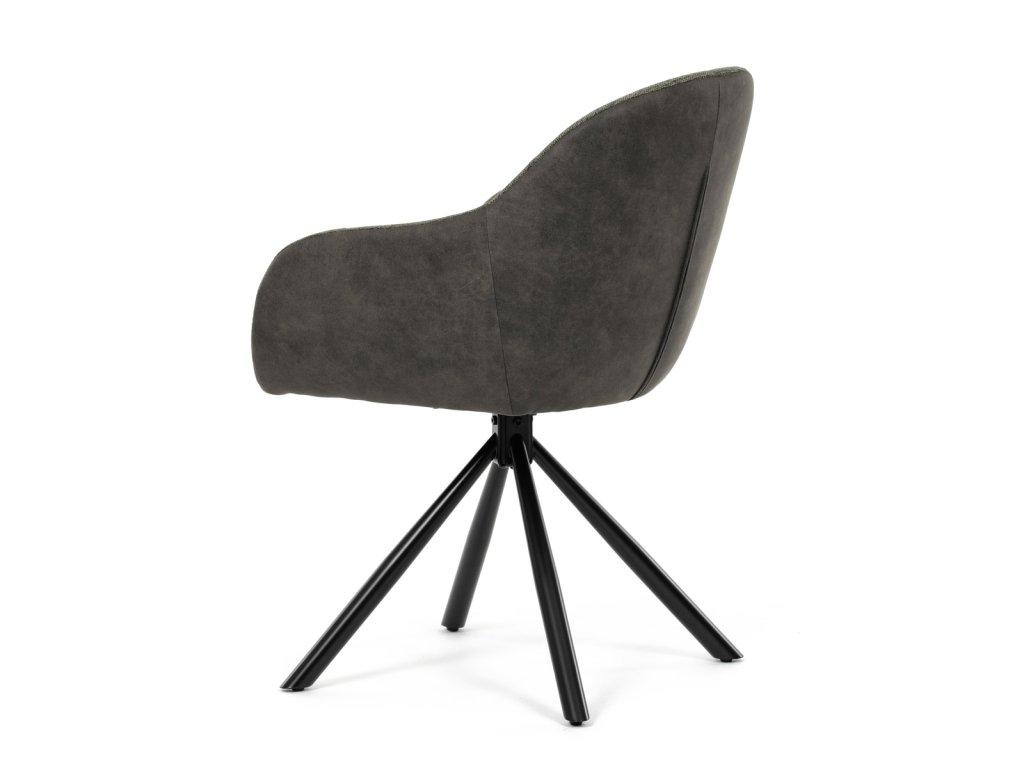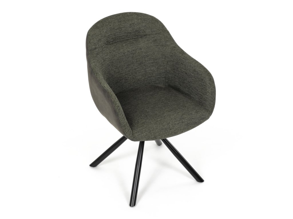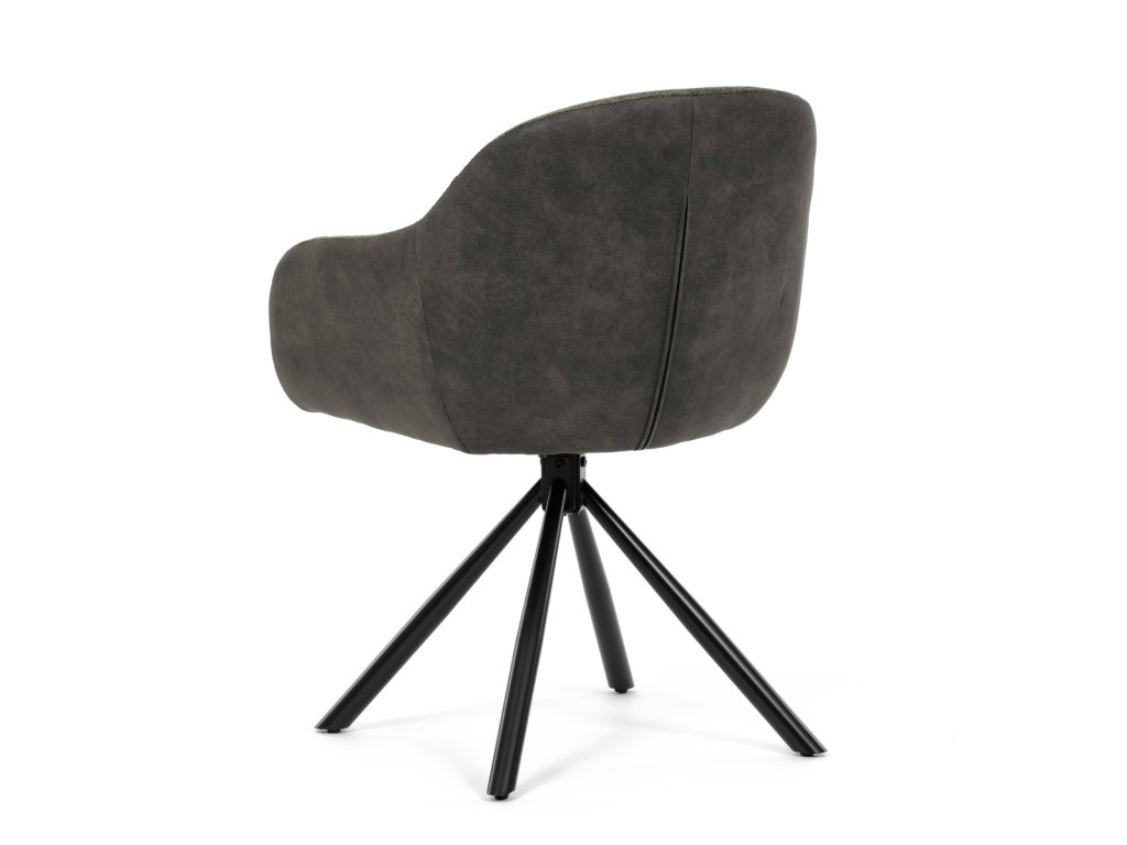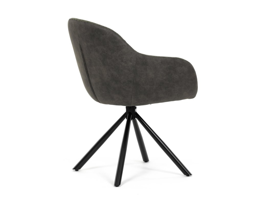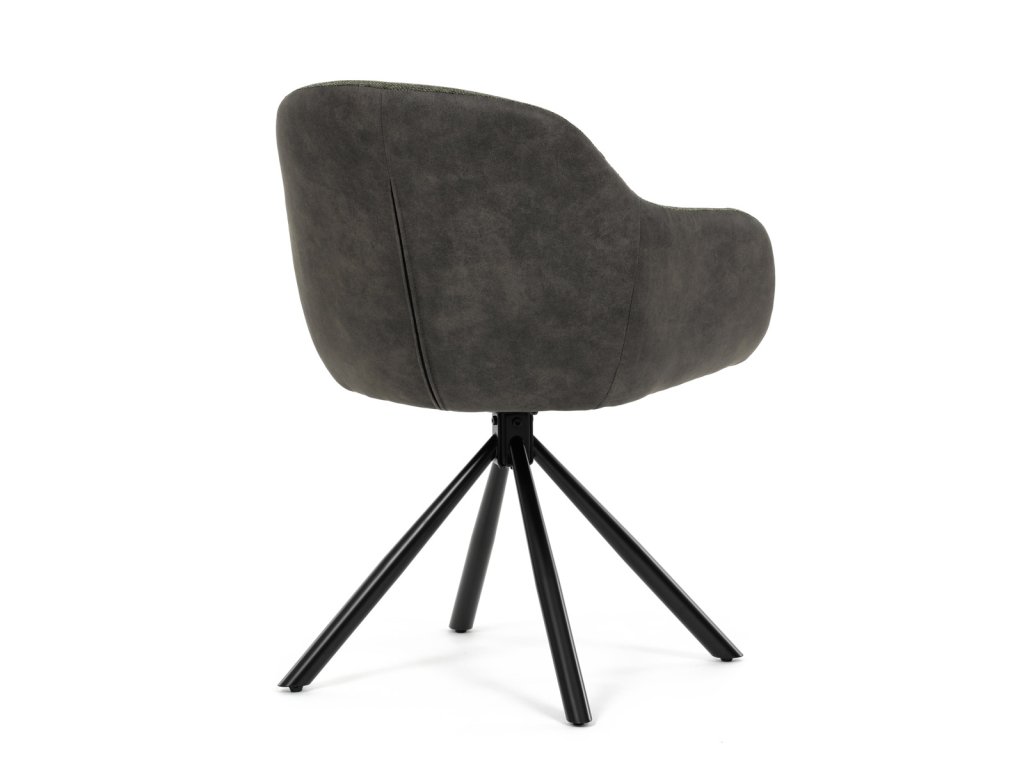 Židle jídelní, zelená látka a tmavě šedá látka v dekoru vintage kůže, černý kov, otočná P90°+ L90° s vratným mechanismem