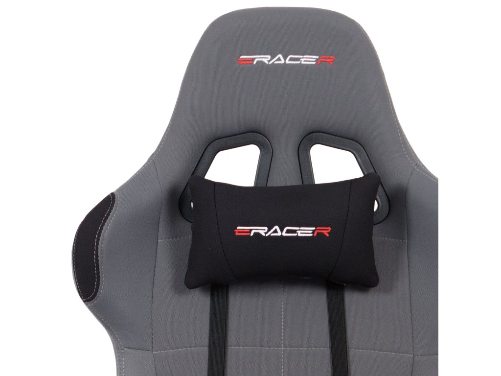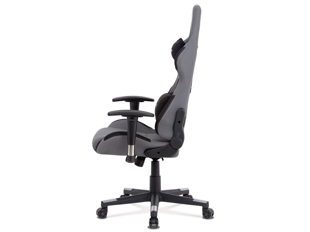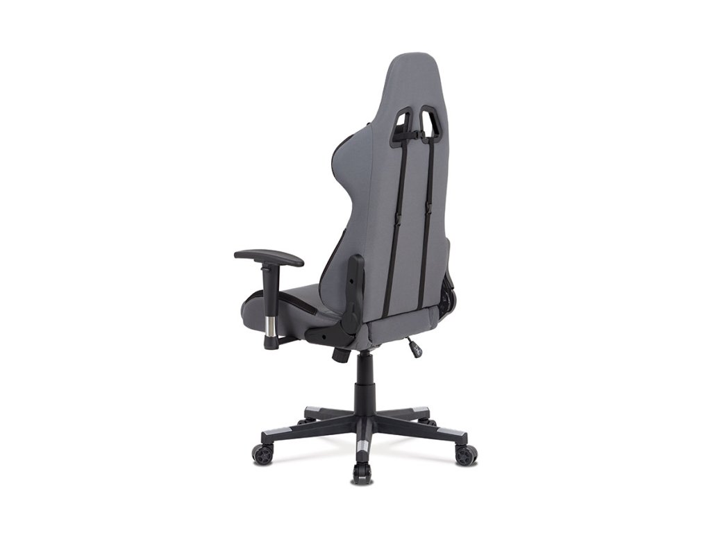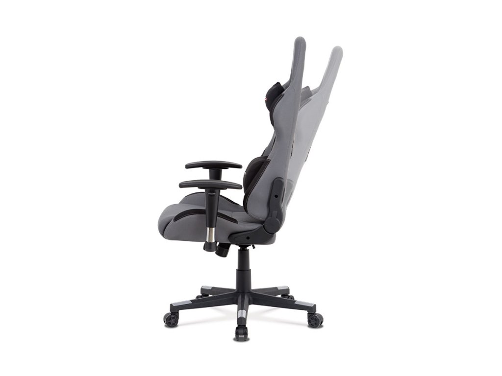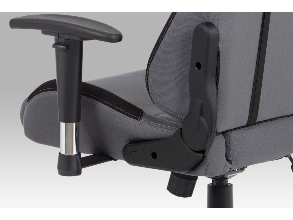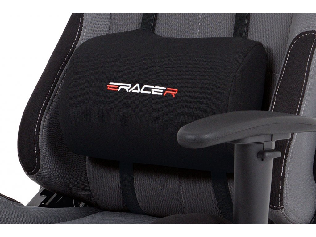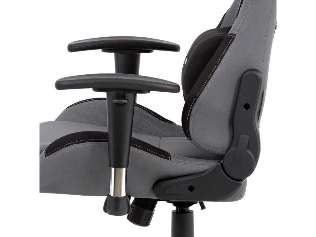Kancelářská židle ve sportovním designu v šedé látce s černými detaily se stane nezbytným doplňkem každého závodníka. Polohovací opěrák, který lze sklopit na 180° a houpací mechanismus zajistí komfortní užívání, stejně tak i bederní polštářek nebo polštářek pod hlavu, které lze odepnout. Židle má také nastavitelné područky, plastový kříž a pogumovaná kolečka vhodná na tvrdé podlahy.